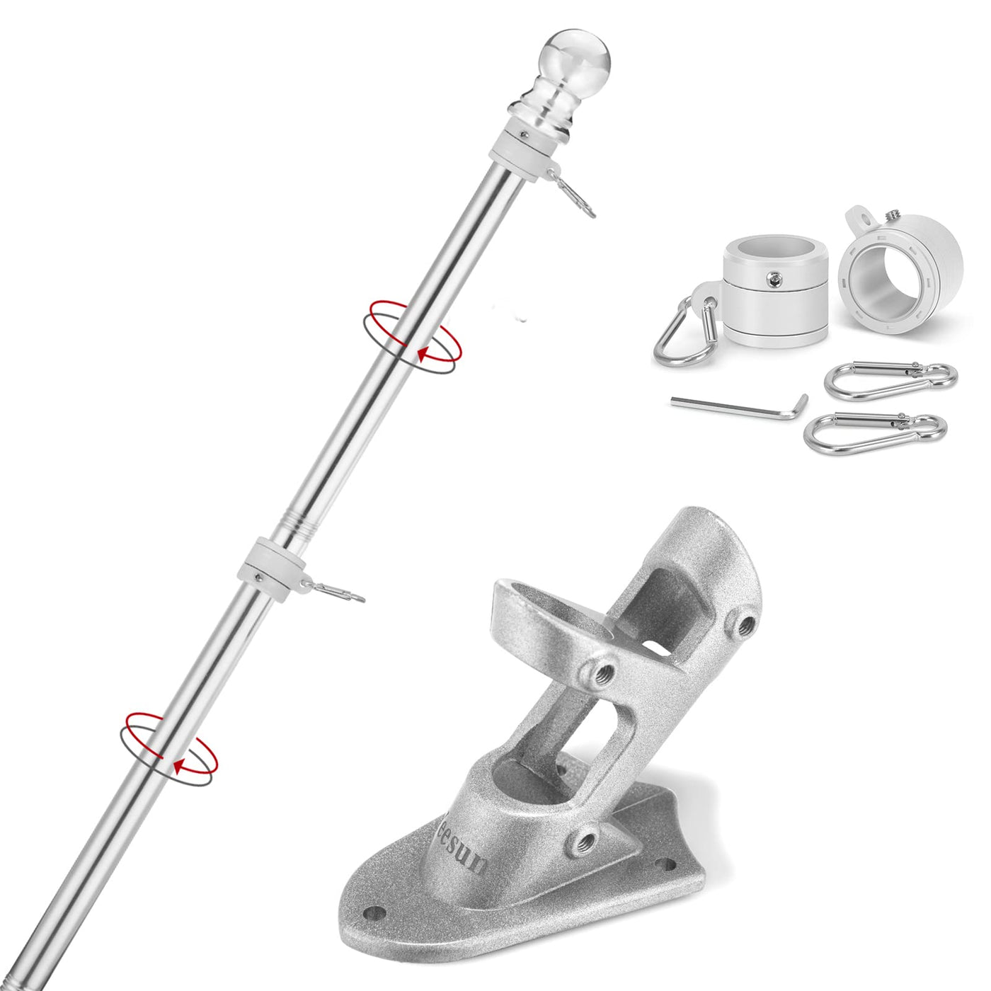 Insight Into Yishangwujin (Yeesun)A We Specialize In Providing High Quality Flagpoles And Hardware Our Flagpoles Are Made Of Powder-Coated Stainless Steel Which Provides A Durable And Long Lasting Product The High Quality Flag Is Suitable For Indoor Or Outdoor Decoration And Commercial Or Personal Use Great For Sports, Parades, Holidays And Promotions Our Flagpoles Are Easy To Assemble And Tangle Resistant They Come With High Quality Fray Resistant American Flags Suitable For Indoor Or Outdoor Usefeature: 1Adjustable Length Flag Pole, The Flag Pole Is Assembled From Multiple Parts And Can Be Constructed Between 13Ft To 6Ft May Also Accommodate Flags Of Various Sizes Including: 2 X 3, 3 X 5,4 X 6 Flags 2Dual-Purpose Mounting Bracket Fixes The Flagpole In Two Different Positions: 45 Degrees Or 90 Degrees From Mounting Surface 3360Aanti-Wrap Rotaing Rings, The Tangle Free Flag Pole Allows For Full Rotation Of The Flag And Effectively Prevents Flag Entanglement 4Stainless Steel Flagpole, Able To Withstand Wind And Natural Weather Conditions 5Muti-Purpose,This Portable Flag Pole Is Ideal For Indooroutdoor, Residential Commercial, Promotionaleveryday Useflag Pole Specifications:A Pole Material:Stainless Steel Max Length:6 Ft Min Length:115 Ft Pole Section Length: 13 Ft Number Of Pole Section: 4 Pole Section Width:1 Inch Color: Silverpackage Includes: 1 X Flag Pole, 1 X Mounting Bracket With Hardware,2 X Rotating Rings