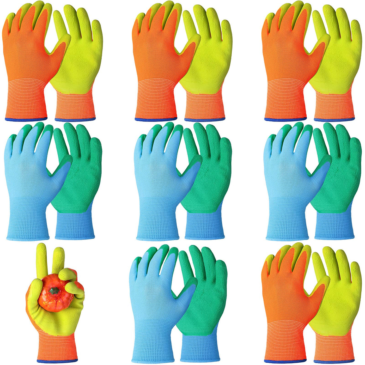 Yetene 8 Pairs Kid Rubber Gardening Gloves For Age 9 To 10 Blue Orange 16 Count Pack Of 1