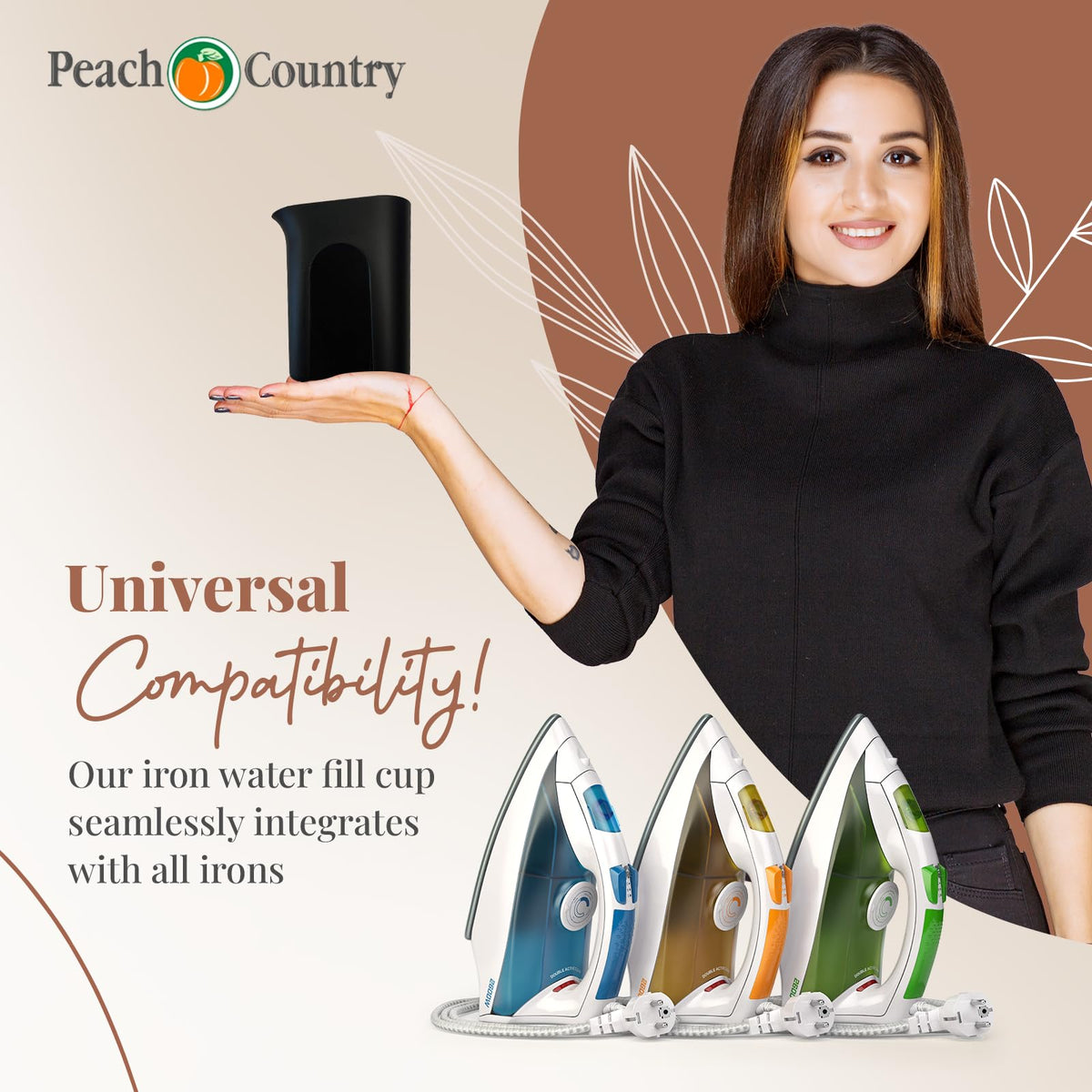 Q: How does the design of the Peach Country water fill cup enhance usability?A: The design of the Peach Country water fill cup allows for easy filling, providing a convenient way to refill your iron without spills or mess.