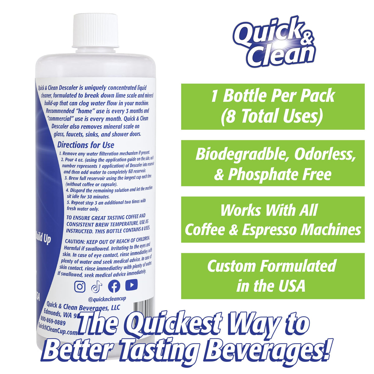 Quick & Clean 32Oz. Descaler (8 Total Uses) - Made In The Usa - Descaling Solution For Nespresso, Ninja, Delonghi, All Other Cof