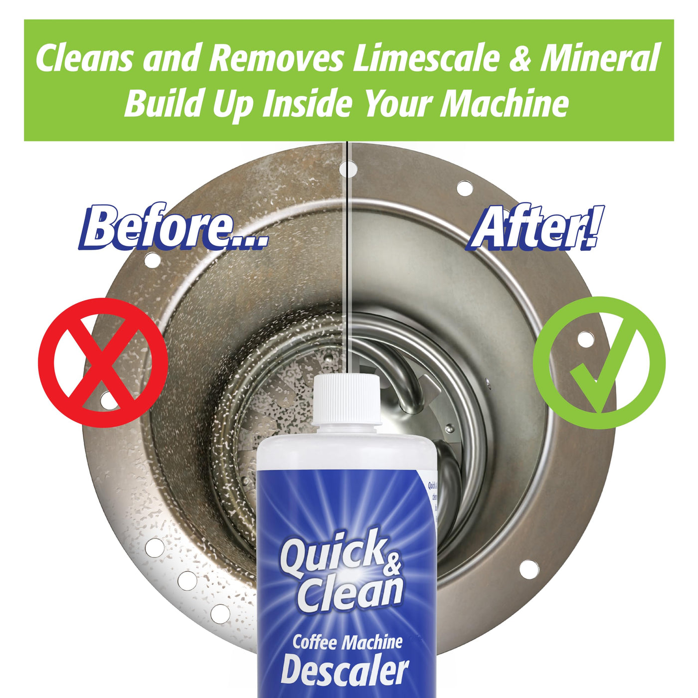 Highly Effective At An Excellent Value: Powerful And Effective Yet Gentle On The Machine, Our Descaler Is Safe For You And The Environment And Will Restore The Performance Of Your Machine. We Exceed The Efficacy Of All Other Similar Descalers! Custom-Formulated, Universal Formula: Compatible With All Single-Use Coffee & Espresso Machines, Including Nespresso, Delonghi, Hamilton Beach, Braun, Bunn, Cuisinart, Tassimo, Krups, Saeco & More! Improves Taste & Preserves Your Machine: Regularly Using A Coffee Descaler Eliminates Limescale / Other Hard Water Mineral Deposits And Prevents Corrosion, Significantly Extending Your Machine'S Lifespan And Enhancing Taste. Suitable For All Types Of Machines: Suitable For Cleaning Automatic Machines, Manual Machines, Pod / Capsule / K Cup Machines, Filter Machines, Commercial Machines, Cappucino Machines, Kettles And Electric Water Heaters! Proudly Made In The Usa: 2 Bottles Per Pack With Each Bottle Containing 2 Uses Per Bottle. Descale Every 3-4 Months For Peak Performance. Please Note: This Is An Aftermarket Cleaning Product Produced By Quick & Clean. Quick & Clean Has No Affiliation With Or Endorsement From Any Of The Manufacturers Mentioned.