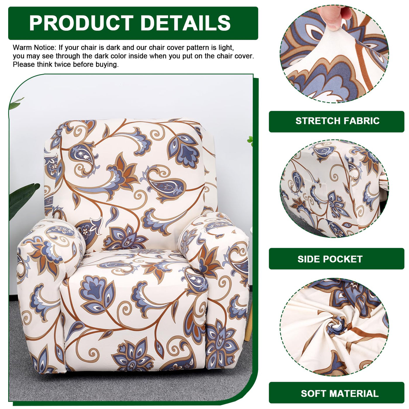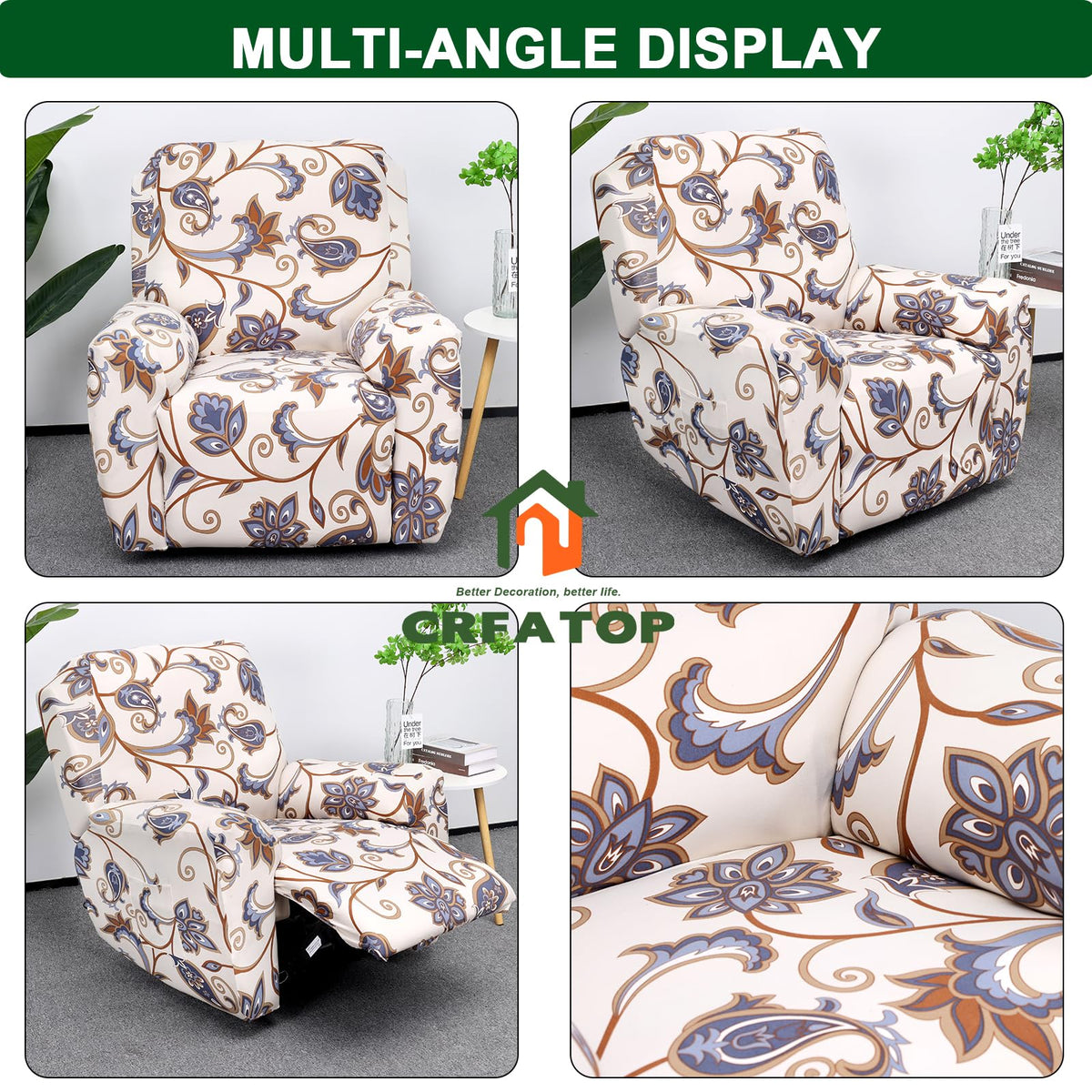 Crfatop Stretch Recliner Cover 4-Pieces 1 Seat Recliner Chair Slipcovers Printed Fallon Collection Slipcover Recliner Lazy Boy F