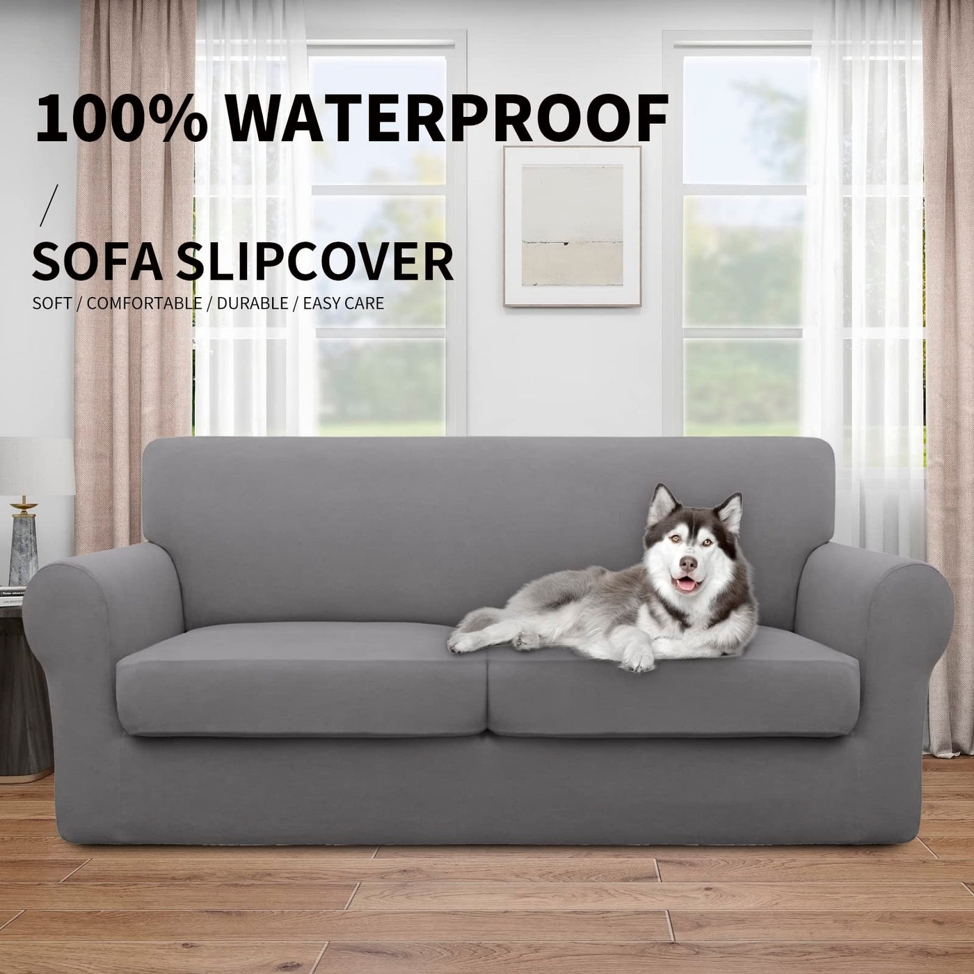 Easy-Going 100% Dual Waterproof Oversized Loveseat Cover Stretch Soft Couch Cover For Dogs, Sofa Slipcover For 2 Separate Cushion Couch Leakproof Furniture Protector For Kids, Pets Light Gray