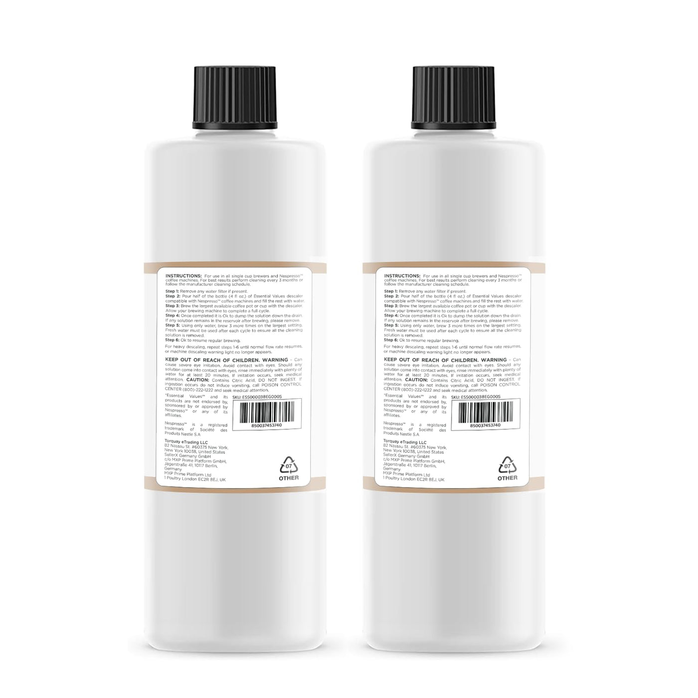 Make Your Coffee Machine Work Like New With Essential Values Descaling Solution! This Powerful Citric Acid Coffee Machine Descaler Is Formulated To Be Compatible With All Nespresso Coffee Machines. It Busts Limescale Deposits And Coffee Oil Residue To Keep Your Machine Running Like New Every Time. Savor Your Coffee'S Rich Flavor With The Descaler Never Leaving Any Vinegar Flavor In Your Machine As Well As Giving You A Faster Flowing Machine. The Natural Concentrated Formula Cleans Better Than Vinegar And Is Odorless, Safe, And Effective. Plus, This 2-Pack Has Incredible Value With 2 8Oz (236Ml) Bottles That Will Last You 12 Months In Total (It'S Recommend You Descale Your Machine Every 2-3 Months). Bring New Life To Your Coffee Bar With Essential Values Descaling Solution! Highlights: Better-Tasting Coffee No Aftertaste 6-Month Supply Vegan Specification: Dimensions: 6.3'' X 3.9'' X 1.9'' (15.9 Cm X 9.9 Cm X 4.8 Cm) Weight: 1.3 Lb (0.6 Kg) Materials: Citric Acid Comes With: 2-Pack Bottle Only