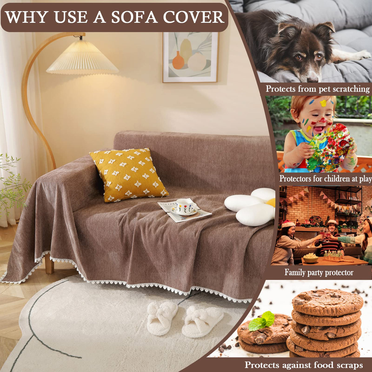 Handontime Brown Sofa Covers Simple Couch Cover For Pet White Floral Couch Cushion Covers For L Shape Chocolate Sofa Throw Cover Sectional Couch Covers For Living Room Machine Washable, 71' X150'