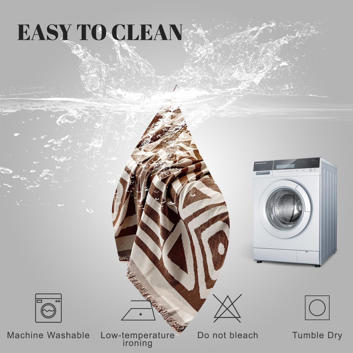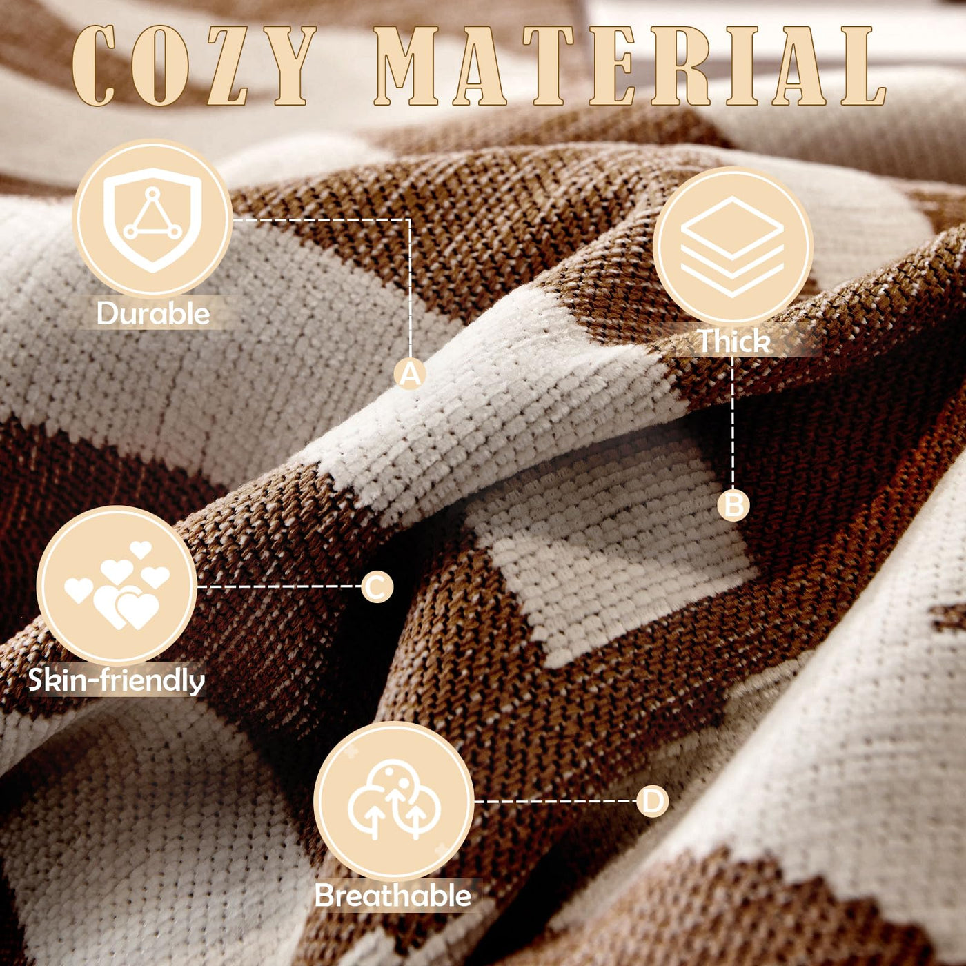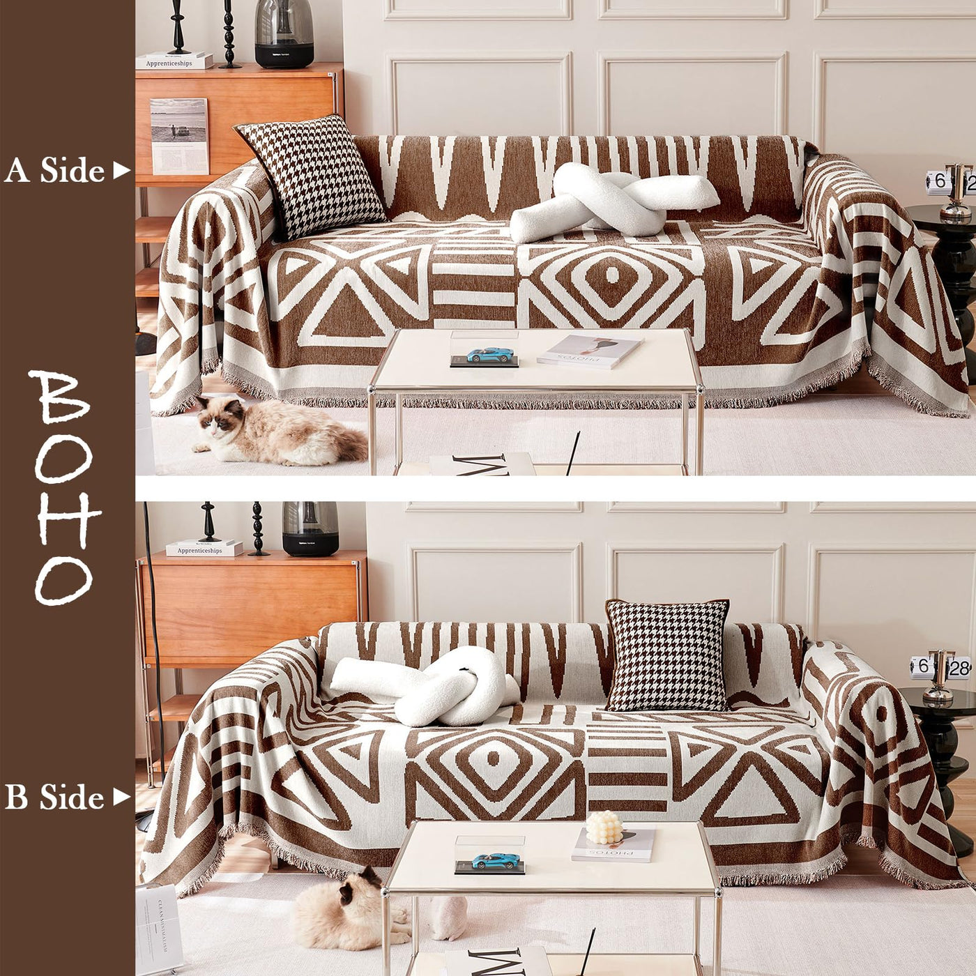 Handontime Chocolate Boho Couch Cover Reversible Sofa Covers For 3 Cushion Couch Washable Couch Sofa Cover For Dogs Dark Couches Covers Chenille Couch Protector Couch Covers For Sofa, 71' X134'