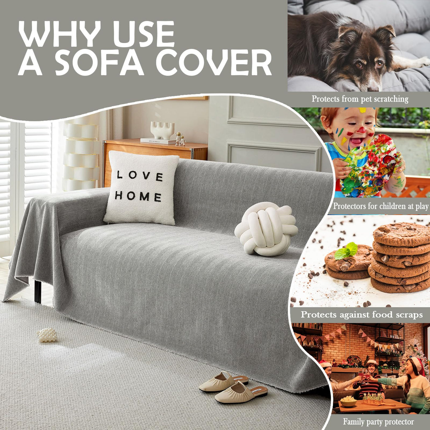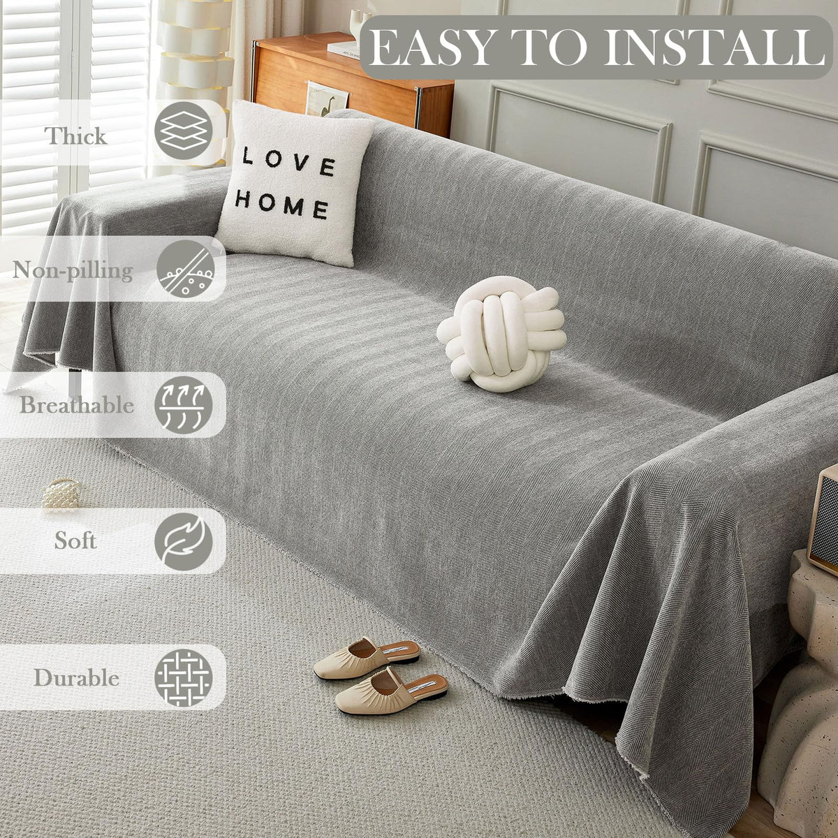 Handontime Couch Slipcovers For Sofas Dark Grey Couch Cover Sofa Cover For Dogs Boho Pet Couch Protector With Tassel Couch Throw Cover Chenille Herringbone Couch Cover Sofa 2 3 Seat Cover, 91' X118'