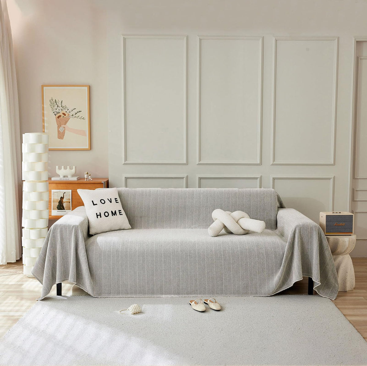 Handontime Grey Sofa Cover For Couch Boho Couch Cover For 3 Seat Couch Dog Couch Cover Love Seat Couch Covers Light Grey Sofa Sectional Cover 91' X118' Tassel Chenille Herringbone Sofa Covers