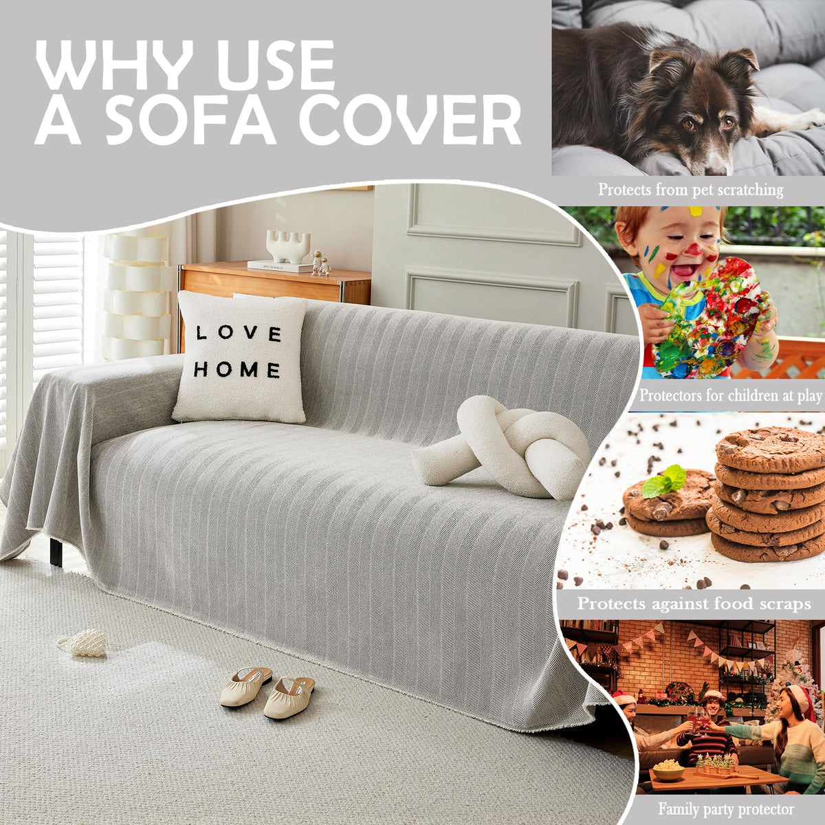 Handontime Grey Sofa Cover For Couch Boho Couch Cover For 3 Seat Couch Dog Couch Cover Love Seat Couch Covers Light Grey Sofa Sectional Cover 91' X134' Tassel Chenille Herringbone Sofa Covers