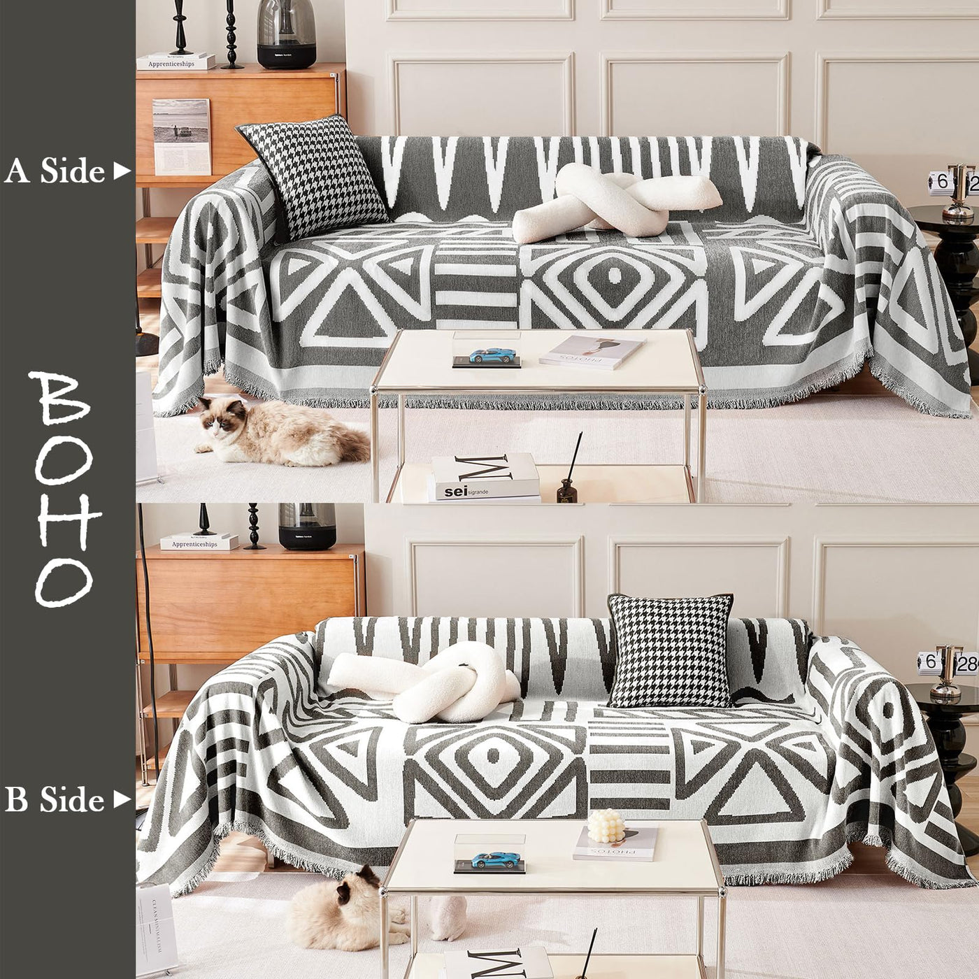 Handontime Reversible Sofa Cover Boho Geometric Couch Cover For Dogs Dark Grey Couches Covers Washable Chenille Couch Covers For 3 Cushion Couch Pet Friendly Furniture Protector For Pets, 71' X118'