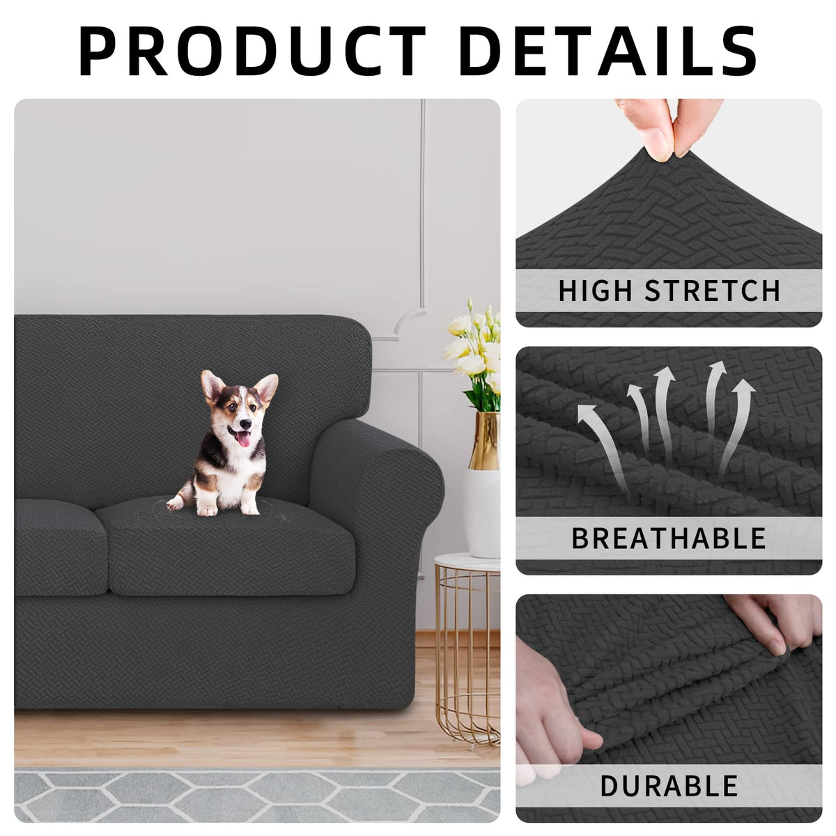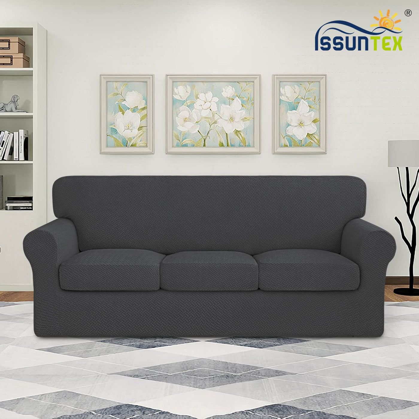 Issuntex 4 Pieces High Stretch Thicken Couch Covers, Soft Sofa Slipcover For 3 Separate Cushion , Jacquard Fabric Elastic Furnit