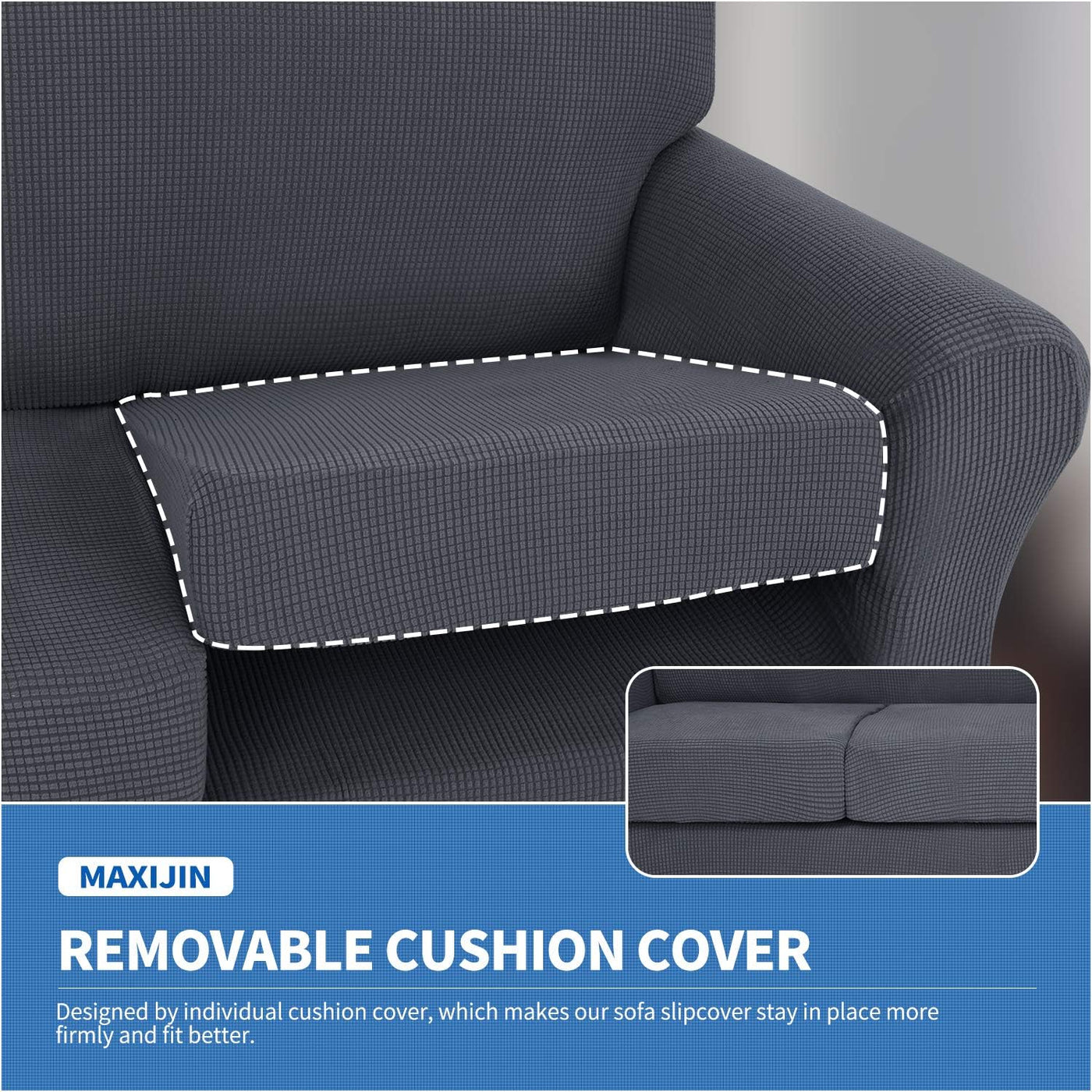 Q: How do I ensure the couch cover fits securely on my sofa?A: The MAXIJIN couch covers feature a strong elastic edge on the bottom to help secure the cover and ensure a non-slip fit. For optimal fit, it is important to measure your sofa accurately according to the provided measuring guide.