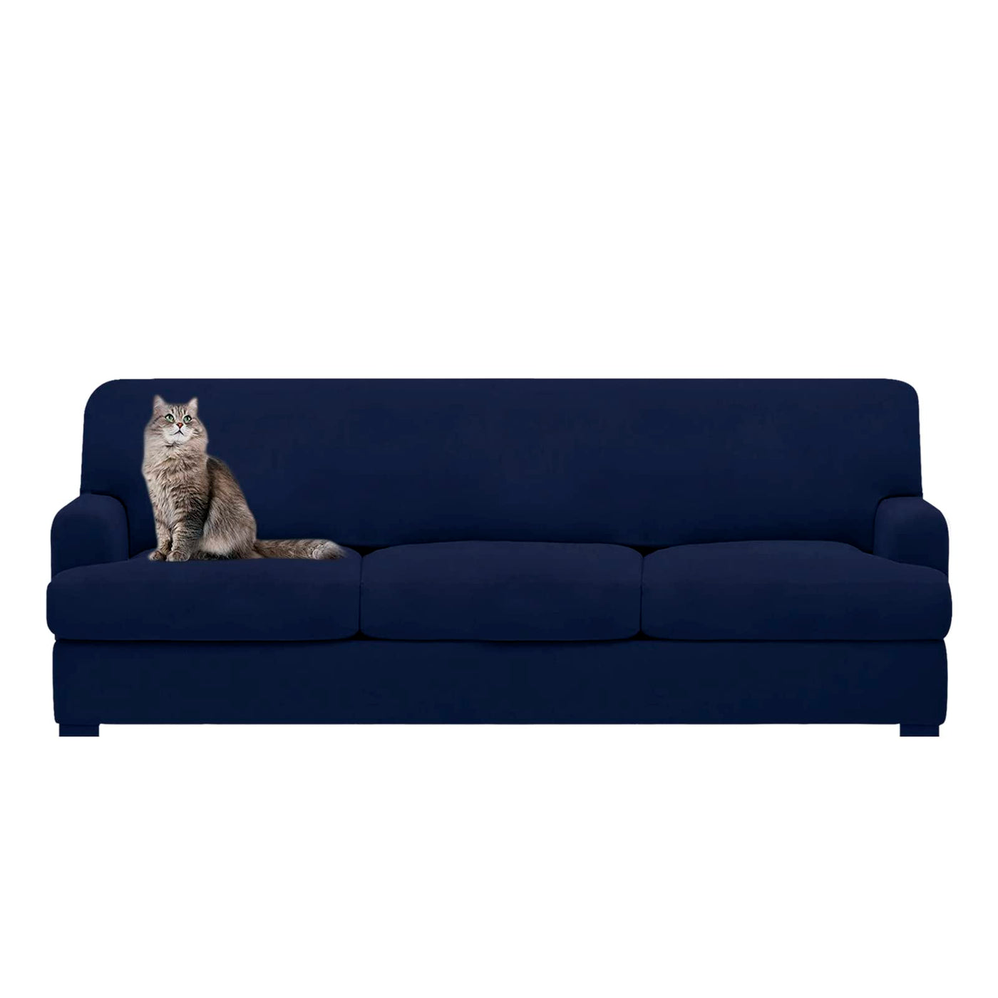 Molasofa T Cushion Sofa Slipcovers With 3 Individual T Cushion Shape Seat Covers For Home Décor,4 Pieces Stretchable Washable Non-Pilling Non-Slip T Cushion Sofa Slipcover(Sofa,Navy Blue)