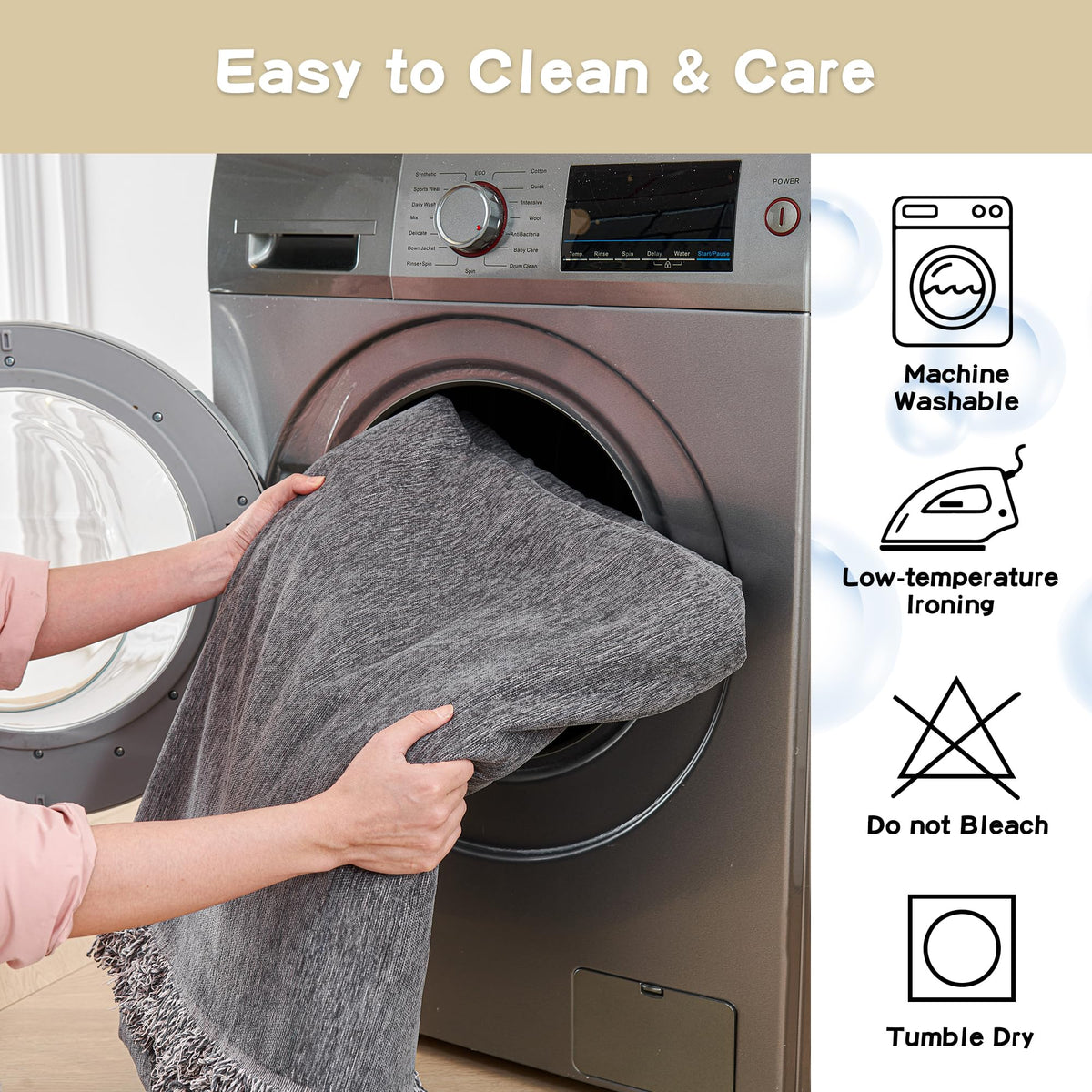 Q: How do I care for the couch cover?A: The couch cover is machine washable. We recommend washing it in cold water on a gentle cycle with mild laundry detergent. Avoid bleach and ironing to maintain the quality of the fabric.