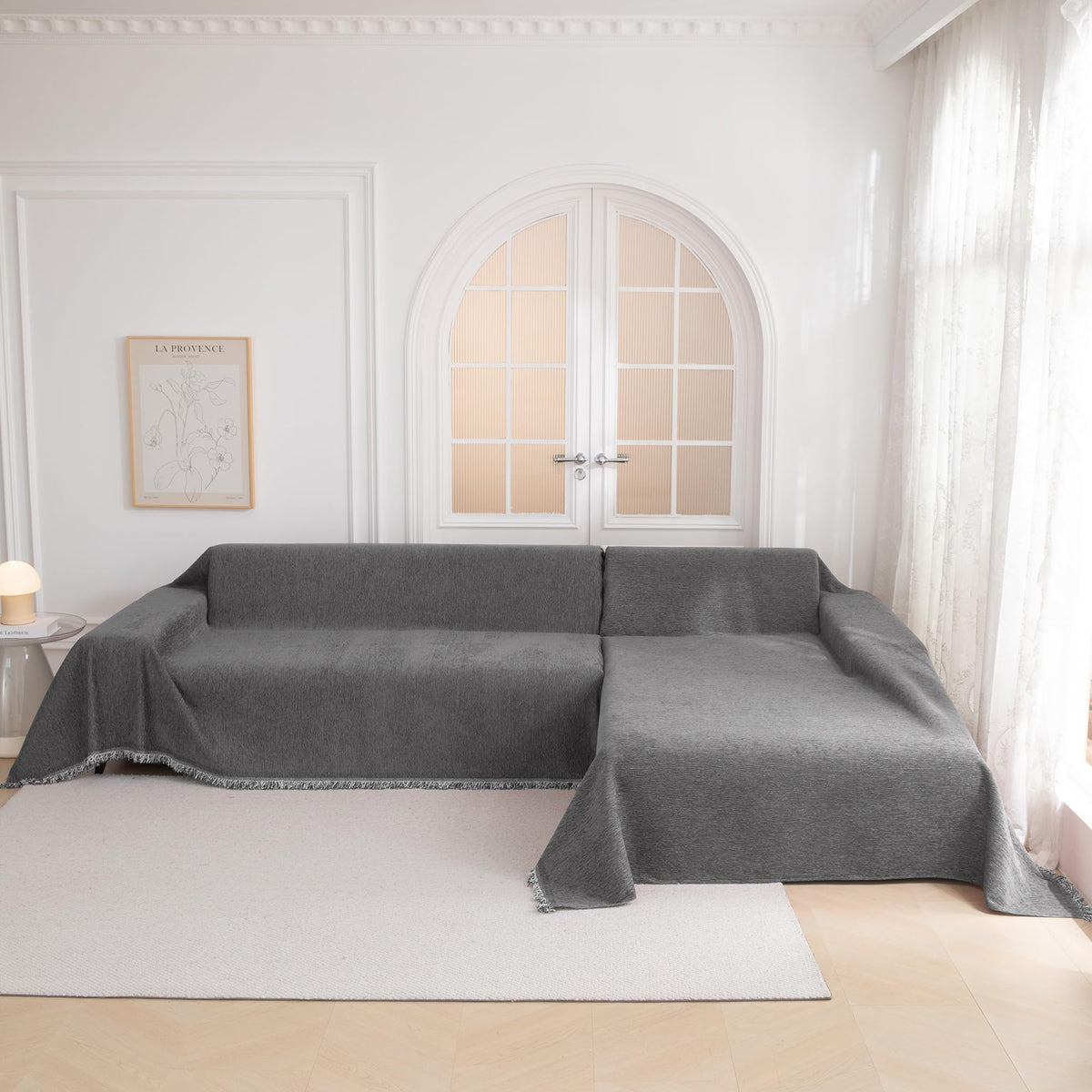 Q: What makes this couch cover different from others?A: This couch cover features a premium chenille fabric that is not only thick and comfortable but also anti-slip, ensuring it stays in place. Additionally, it comes with decorative tassels for an elegant touch.