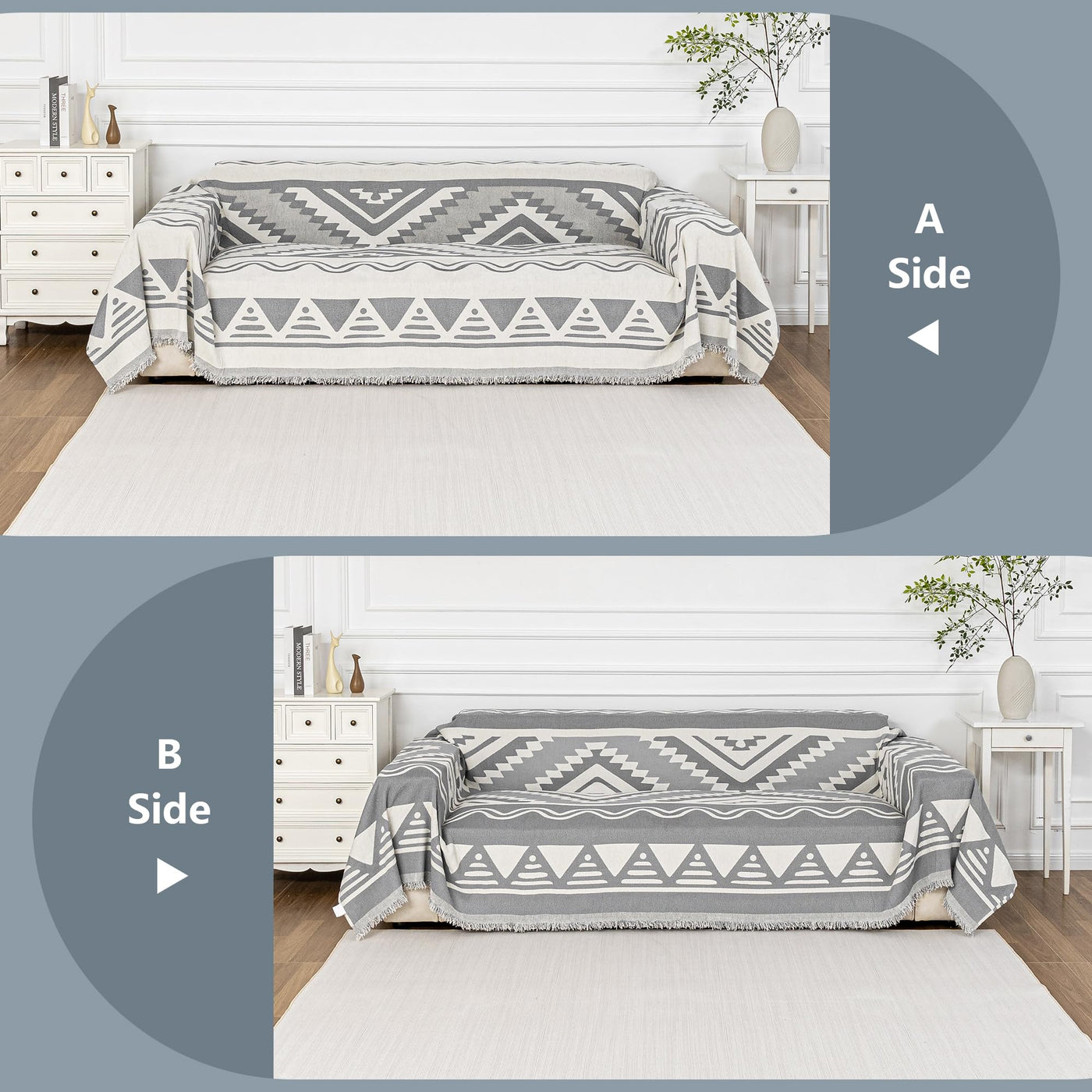 Q: What is the design of the couch cover?A: The MYSKY HOME Sectional Couch Cover features a fashionable and simple boho geometric pattern that adds a dynamic visual element to your living space. This light luxury design enhances your home decor while offering practical protection for your sofa.