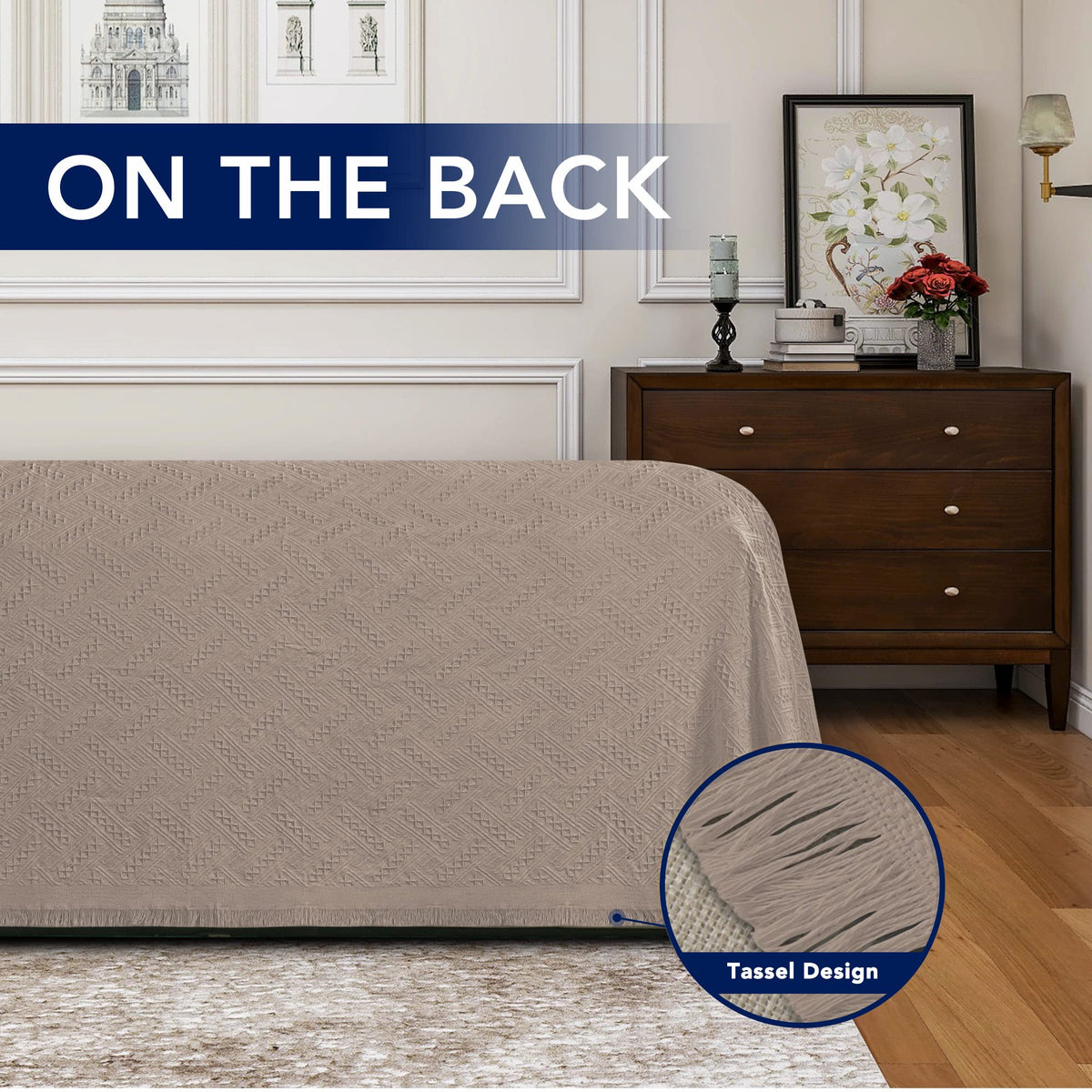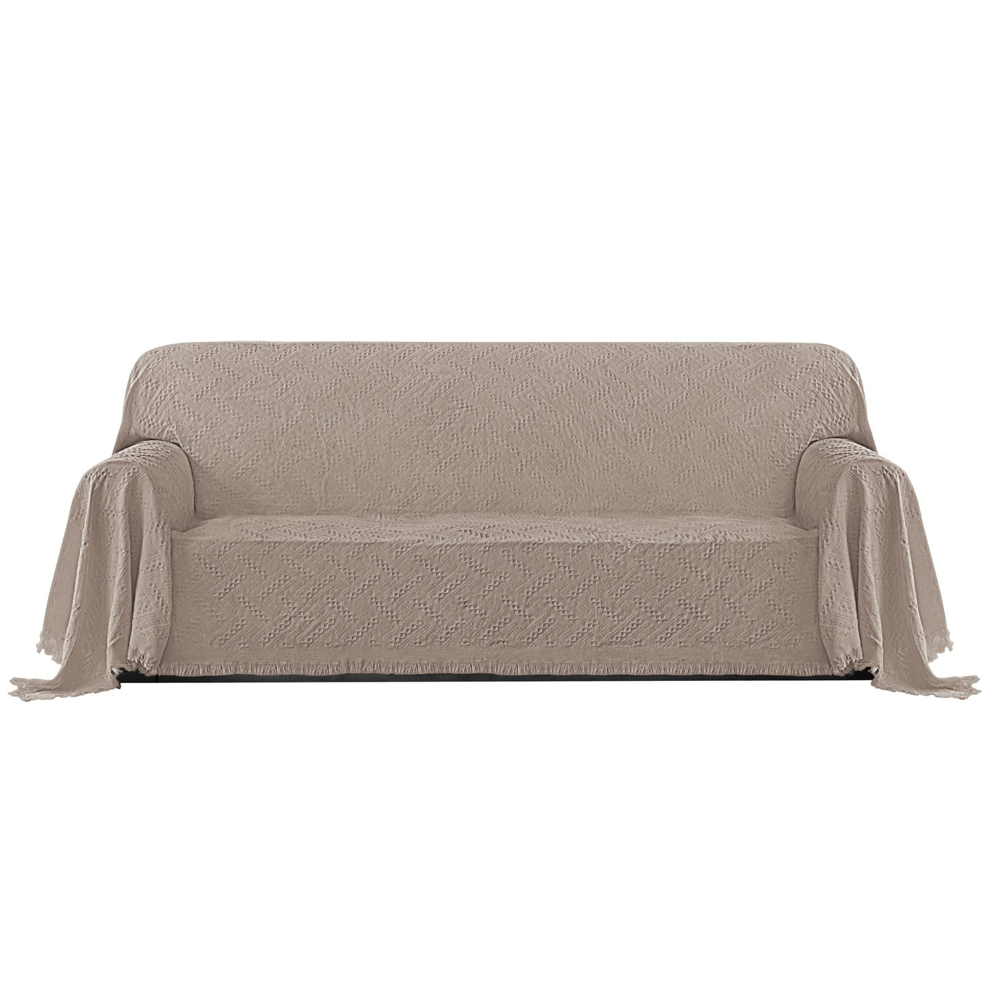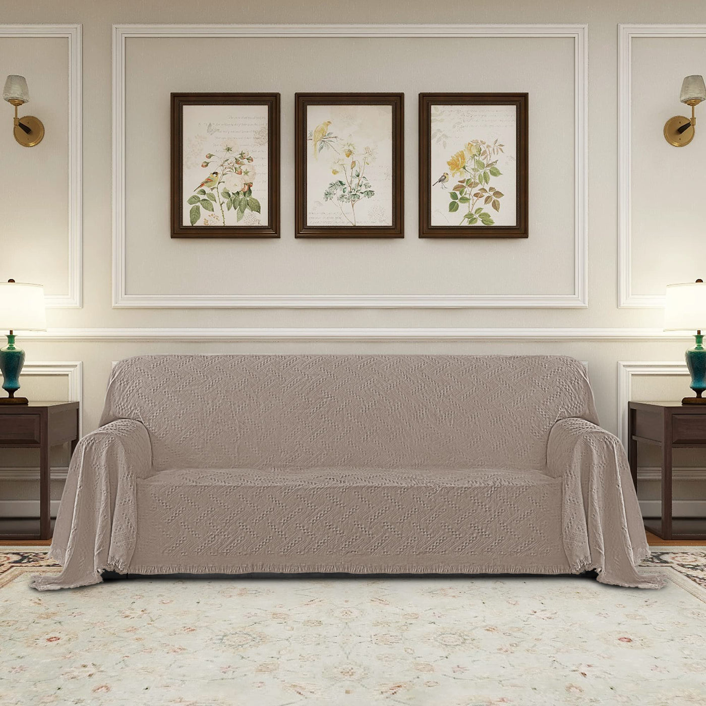 Purefit Geometric Jacquard Throw Sofa Cover - Textured Soft Washable Decorative Couch Covers For 3 Cushion Couch, Throw Cover With Tassels Furniture Protector For Pets, Kids (Large, Camel)
