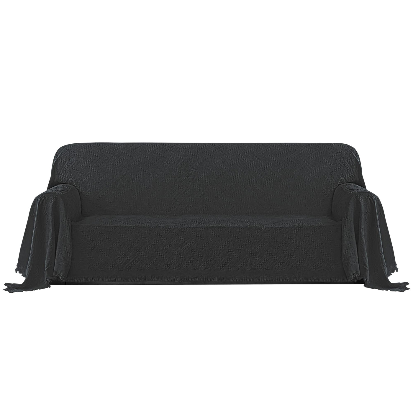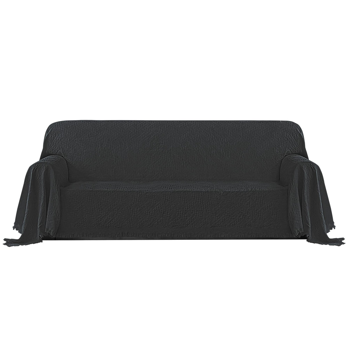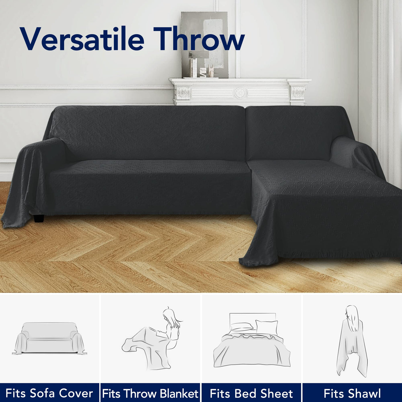 Purefit Geometric Jacquard Throw Sofa Cover - Textured Soft Washable Decorative Couch Covers For 3 Cushion Couch, Throw Cover With Tassels Furniture Protector For Pets, Kids (Large, Dark Gray)