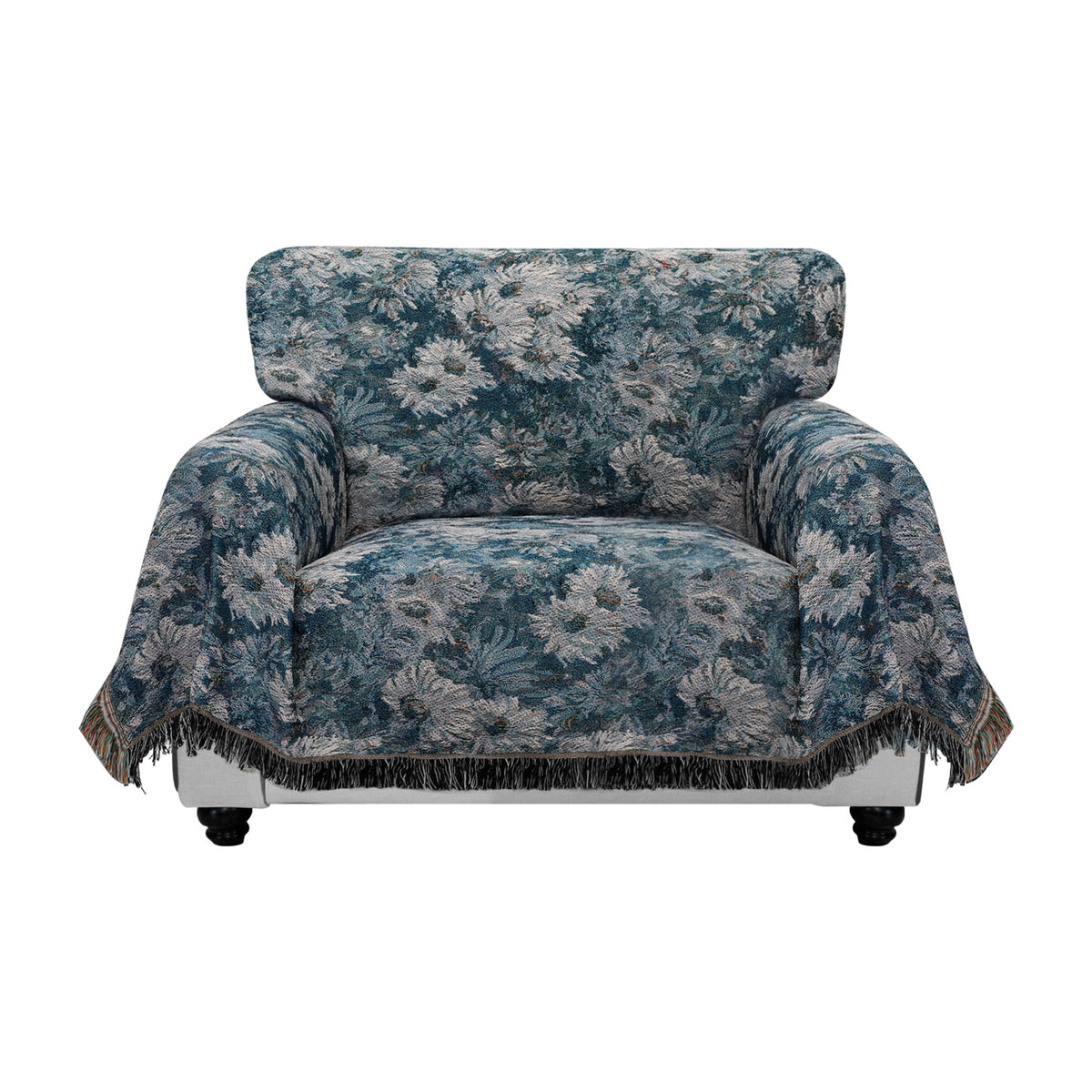 Purefit Geometric Jacquard Throw Sofa Cover - Textured Soft Washable Decorative Couch Covers For 3 Cushion Couch, Throw Cover With Tassels Furniture Protector For Pets (Small, Flower Peacock Blue)