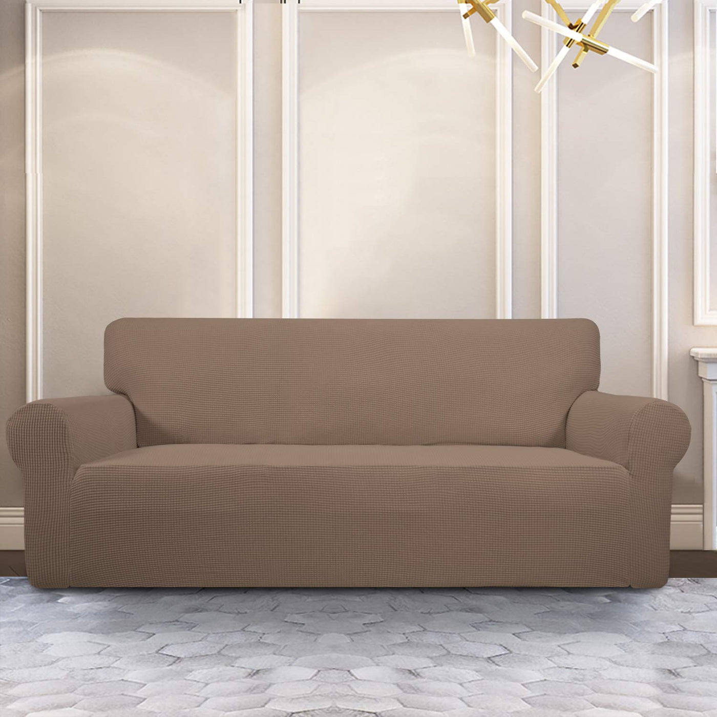 Purefit Stretch Oversized Sofa Slipcover – Spandex Jacquard Non Slip Soft Couch Sofa Cover, Washable Furniture Protector With Non Skid Foam And Elastic Bottom For Kids (Oversized Sofa, Camel)