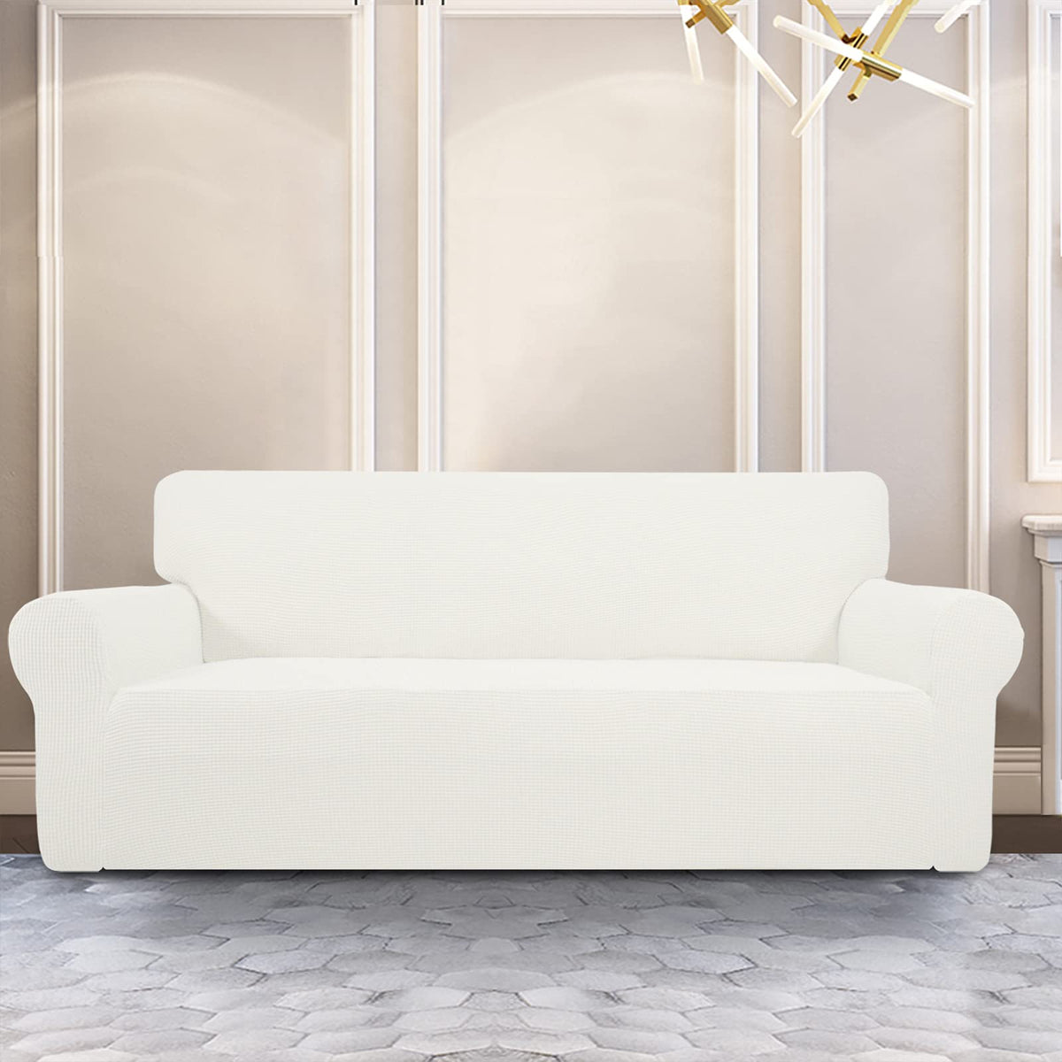 Purefit Stretch Oversized Sofa Slipcover – Spandex Jacquard Non Slip Soft Couch Sofa Cover, Washable Furniture Protector With Non Skid Foam And Elastic Bottom For Kids (Oversized Sofa, Cream)