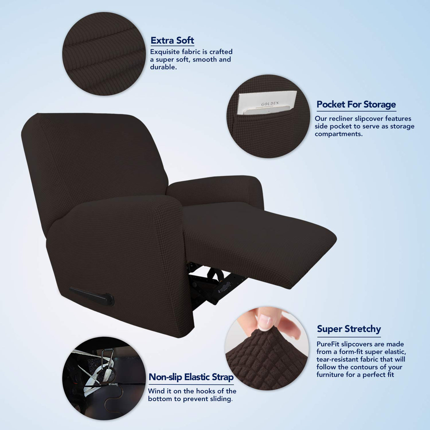 Purefit Stretch Recliner Sofa Slipcover With Pocket With Pocket – Spandex Jacquard Non Slip Soft Couch Sofa Cover, Washable Furniture Protector With Elastic Bottom For Kids (Recliner, Chocolate)