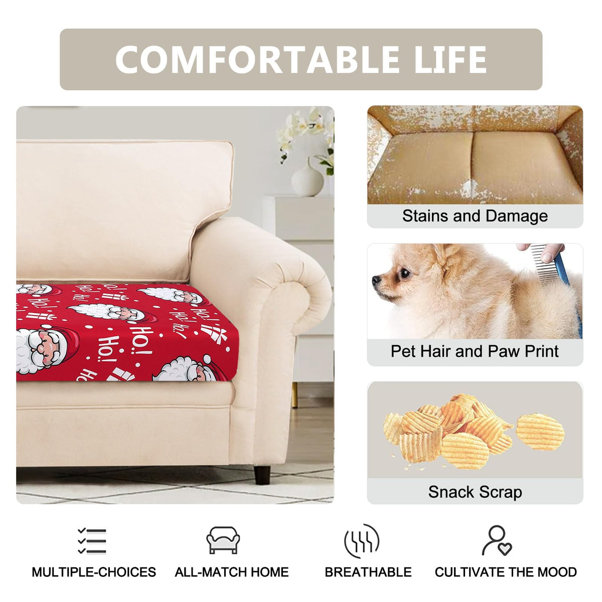 Q: Are these cushion covers machine washable?A: Yes, the SearchI Stretch Christmas Sofa Cushion Covers are easy to clean. You can simply remove the cover by untying the elastic bands, then wash it in the washing machine for convenient maintenance.