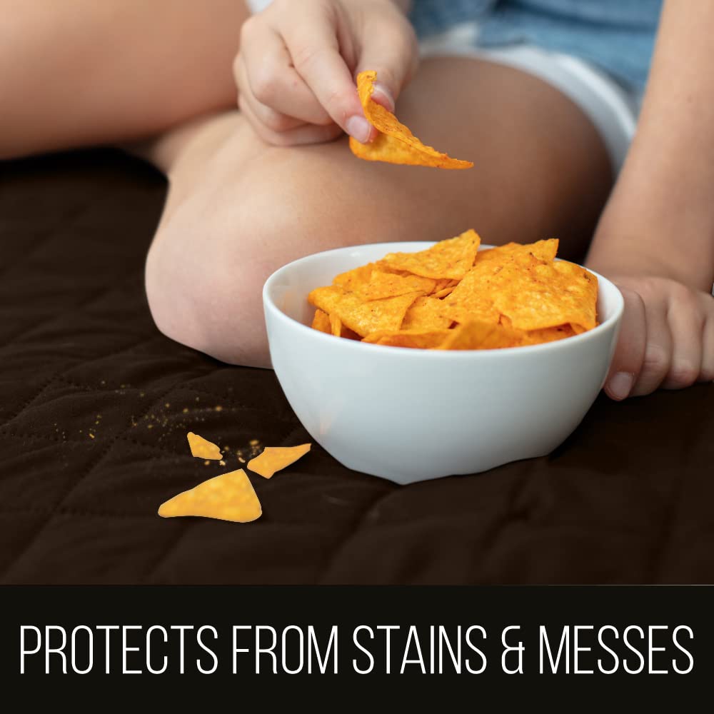Sofa Shield Couch Slip Cover With Patented Strap, Cushion Protector, Reversible Stain And Dog Tear Resistant Slipcover, Quilted Microfiber 78” Seat, Washable Covers For Dogs Pets Kids, Chocolate Beige