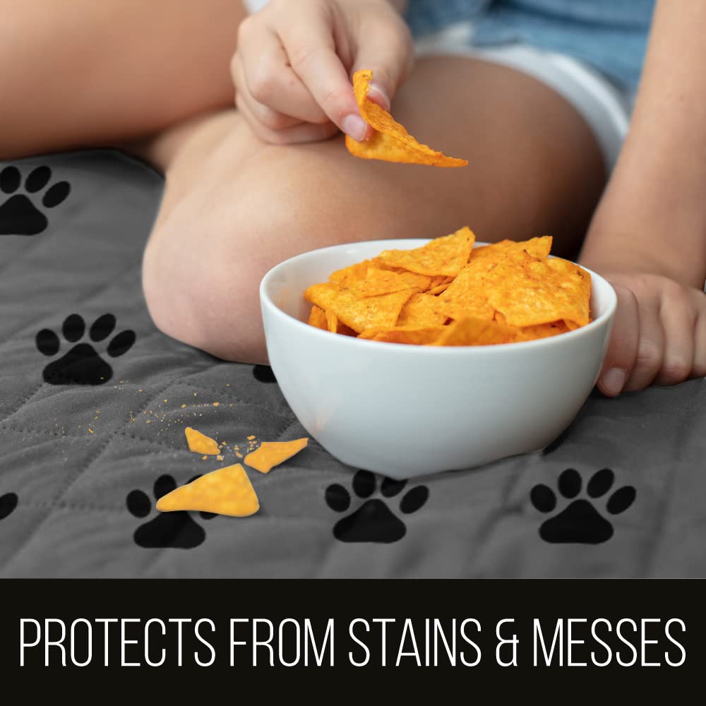 Sofa Shield Couch Slip Cover With Patented Strap, Cushion Protector, Reversible Stain And Dog Tear Resistant Slipcover, Quilted Microfiber 78” Seat, Washable Covers For Dogs Pets Kids, Paw Gray Black