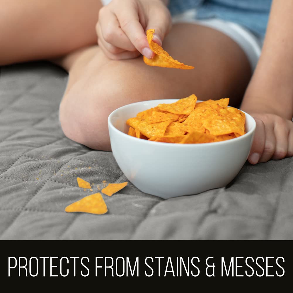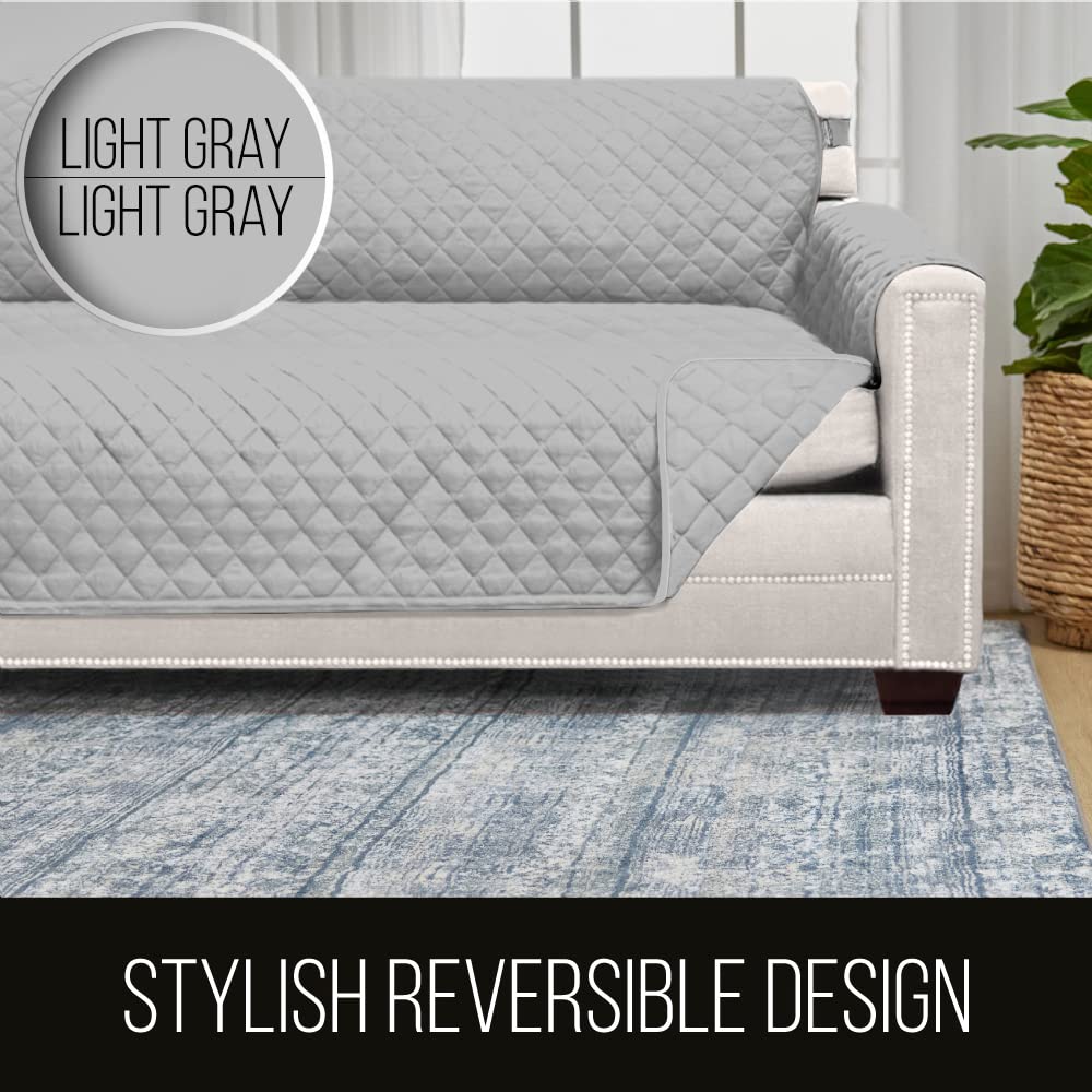 Sofa Shield Patented Couch Cover, Large Furniture Protector With Straps, Reversible Tear And Stain Resistant Slipcovers, Quilted Microfiber 62” Seat, Washable Covers For Dogs, Kids, Light Gray