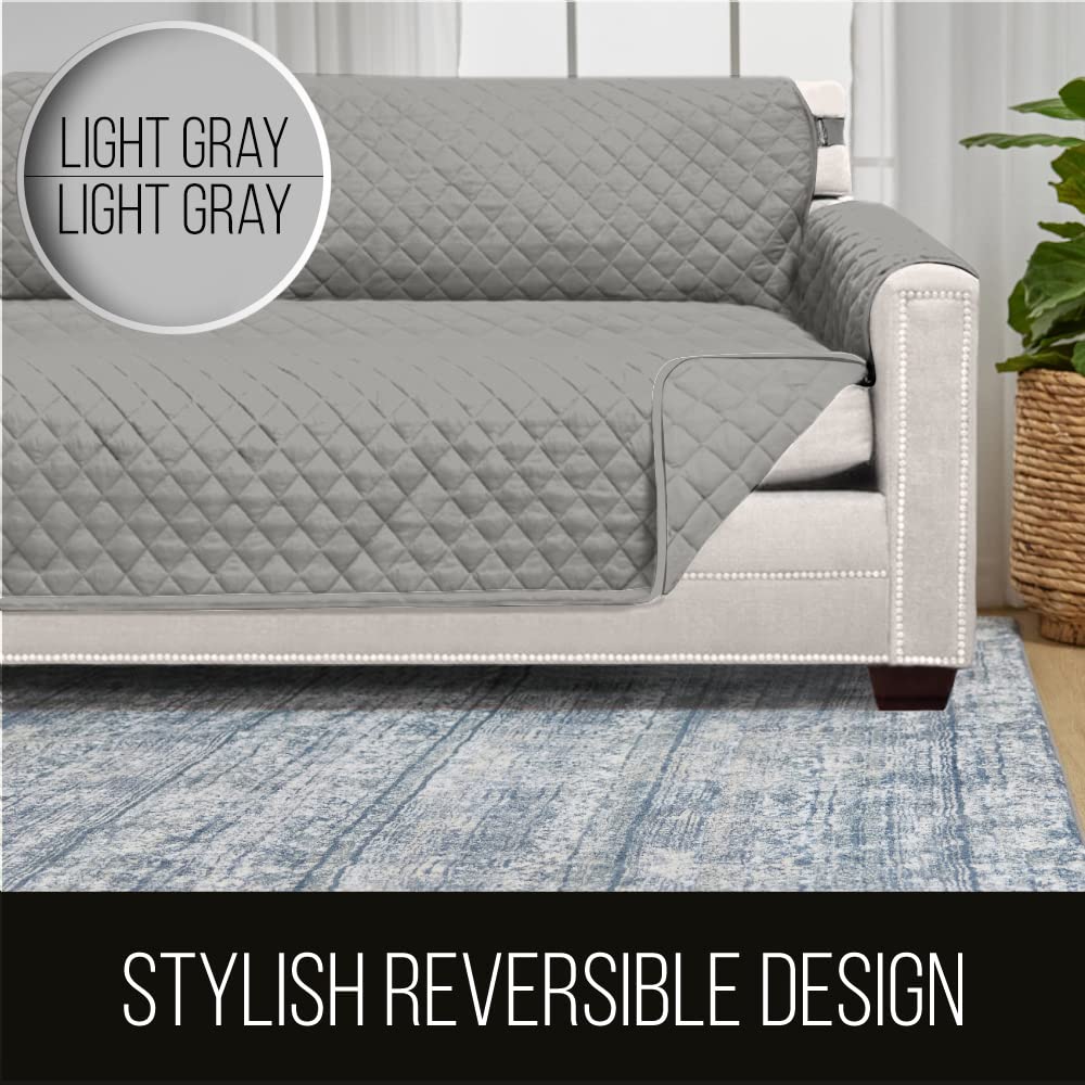 Sofa Shield Patented Couch Slip Cover, Large Cushion Protector, Reversible Stain And Dog Tear Resistant Slipcover, Quilted Microfiber 70” Seat, Washable Covers For Dogs Pets Kids, Light Gray