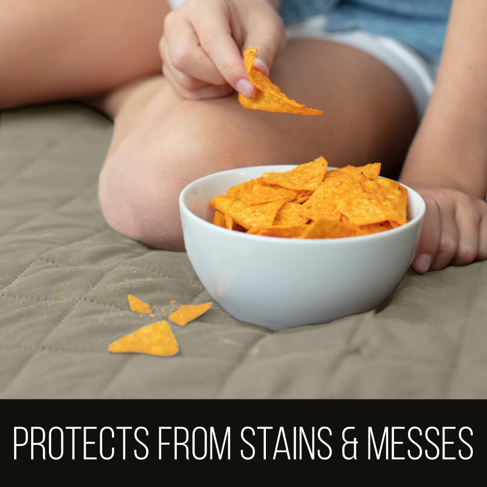 Sofa Shield Patented Recliner Slip Cover, Large Cushion Protector, Reversible Stain And Dog Tear Resistant Slipcover, Quilted Microfiber 28” Seat, Washable Covers For Dogs Pets Kids, Light Taupe