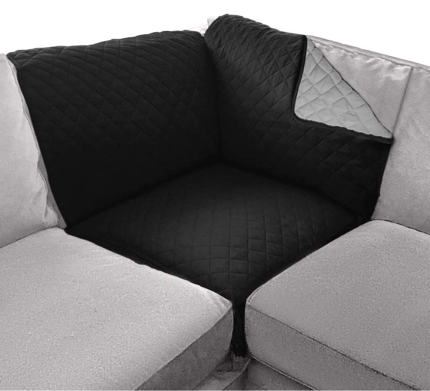 Sofa Shield Patented Sectional Slip Cover, Large Cushion Protector, Reversible Stain And Dog Tear Resistant Slipcover, Quilted Microfiber 30X30” Seat, Washable Covers For Dogs Pets Kids, Black Gray
