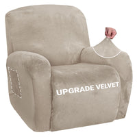 Znsayotx Stretch Velvet Recliner Covers 4-Pieces, Thicker Soft Plush Recliner Chair Slipcover With Side Pockets, Washable Luxury