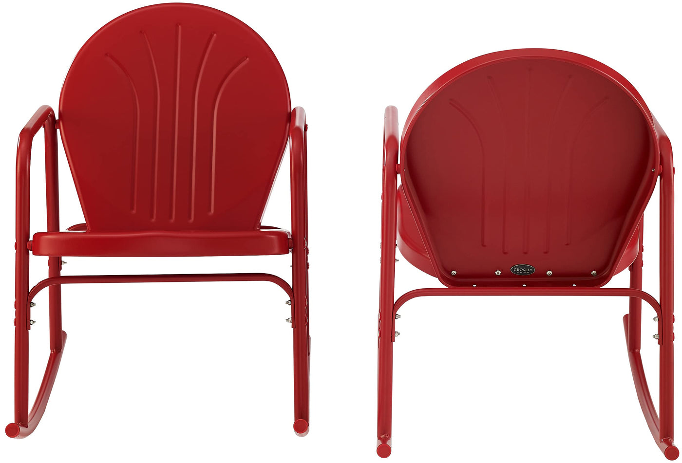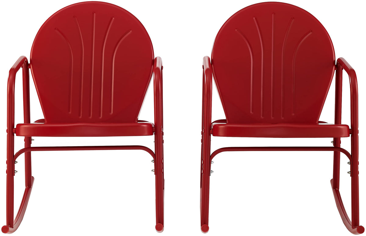 Crosley Furniture Griffith Retro Metal Outdoor Rocking Chairs, Set Of 2, For Porch, Deck, Balcony, Backyard, Bright Red Gloss