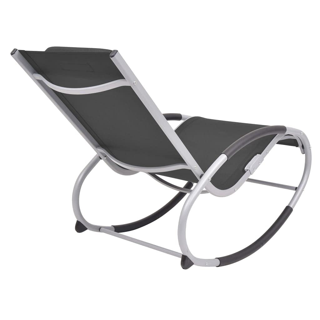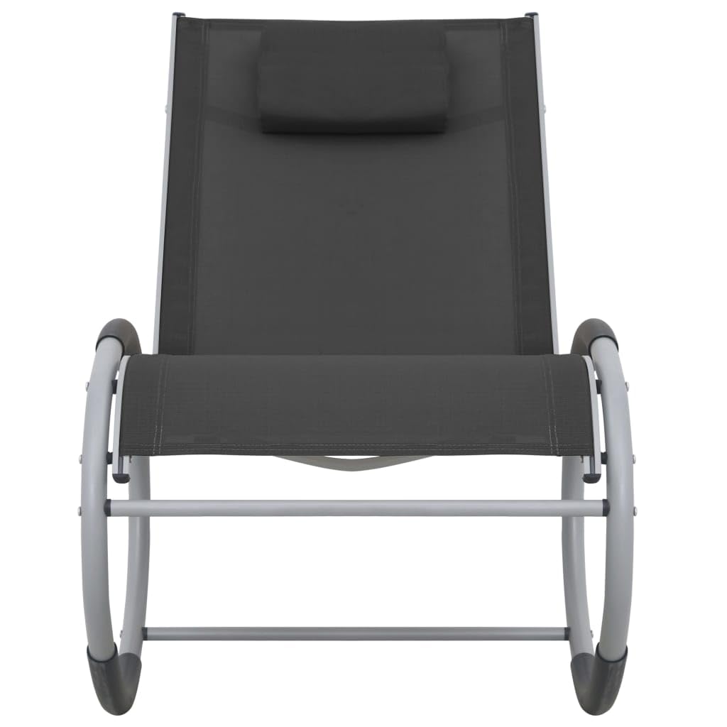 vidaXL Outdoor Rocking Chair in Black, Weather-Resistant with Aluminum Frame & Comfortable Textilene Seat, for Patio & Garden- Ergonomic Design with Cushion