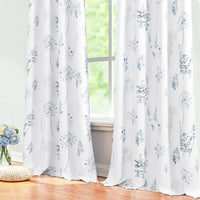 Blue And Grey Curtains 96 Inches Long For Bedroom 2 Panels Grommet Darkening Beautiful Minimalist Serene Flower Print Thermal In