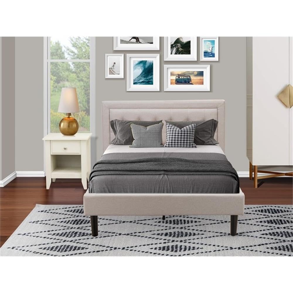 EAST WEST FURNITURE - FN08F-1GA0C - 2-PIECE PLATFORM BED SETThis upholstered bedroom furniture set is good to deliver a gorgeous appeal to any bedroom. It is time to give your bedroom a major style upgrade with this upholstered modern bed. We are providing 2 pieces full bedroom set for a master bedroom that contains 1 mid century bed with a headboard and 1 modern nightstand. This Mist Beige linen fabric Fannin platform bed enhances the appeal of any bedroom to a deluxe level. Our exclusive creation bed set will surely feel comfortable when sitting on this platform bed frame and its plywood slats are good to offer ample support as well as the sturdy equidistant slats increase durability and increase life. Everything you need for assembly is effectively packaged, no additional instruments are required for this full bedroom set.BEDROOM SET FEATURES Material: Engineer Wood Platform Bed Frame Fabric Color: Mist Beige Platform Bed Legs Color: Black Small Nightstand Color: Antique Walnut Dimensions of Platform Bed: Length: 84; Width: 59; Height: 41.30. Small Nightstand dimensions are: Length: 21; Width: 18; Height: 24.Package Includes 1 Platform Bed Frame and 1 Mid Century Modern Nightstand.Note: Platform Full Size Bed, Headboard, Footboard, and Wood slats are provided. The mattress will not be included in this Full Size Bed Set.