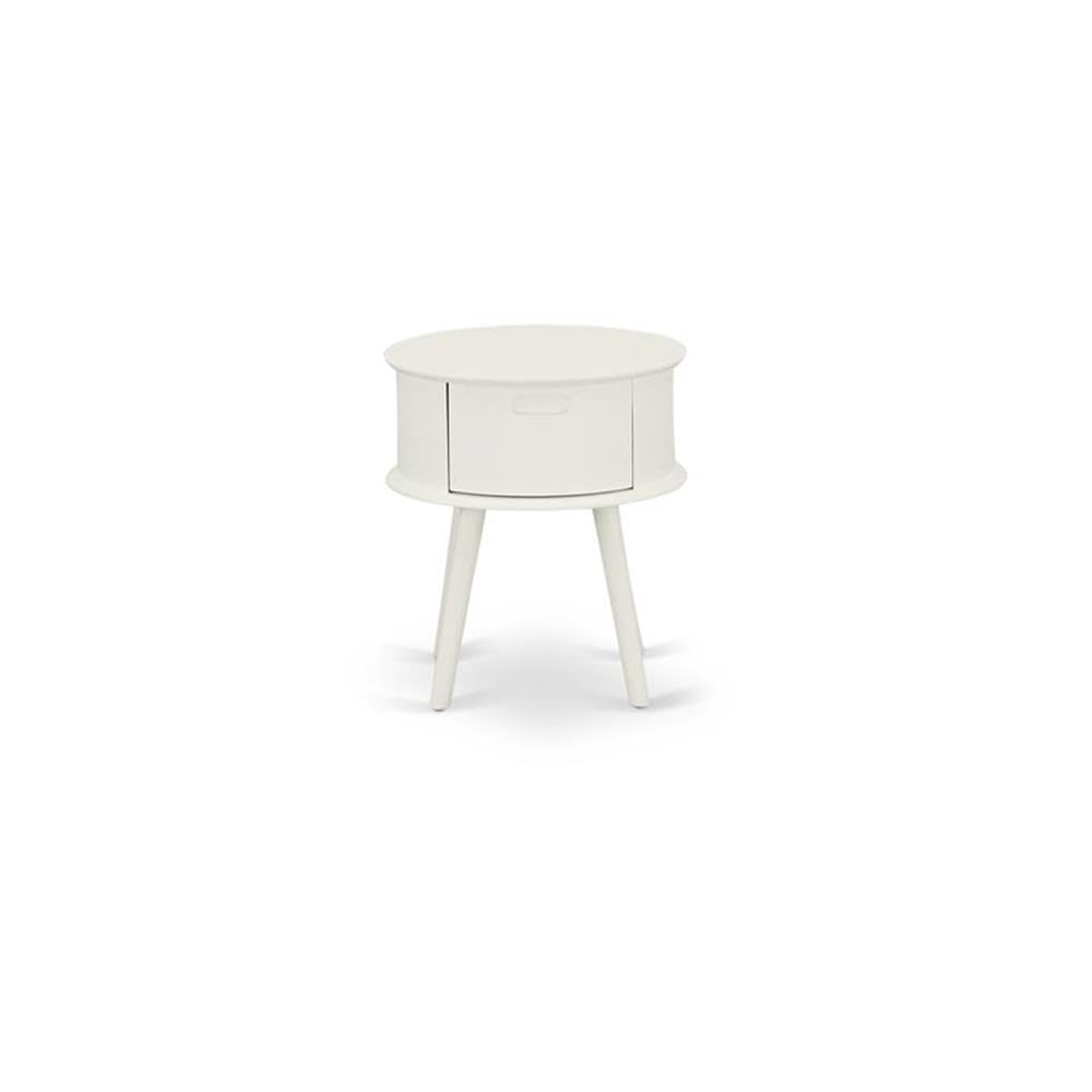 East West Furniture - Gone05 - Modern Nightstand Bedside Tableintroducing Our Stylish Round Table Nightstand, The Gordon Modern Nightstand Table, Which Adds A Touch Of Trendy Elegance To Your Bedroom. This Versatile Bedside Table Embodies Simplicity And Beauty In Its Design, Combining Affordability With Grace. Demonstrating The Concept Of "Less Is More," It Features A Single Door With A Plain Inset Panel And A Brushed Metal Pull As Its Sole Decorations. The Tapered Legs Provide A Stunning Contrast, While The Wood Nailhead Accents Give It A Handmade Look And Feel. Crafted From Asian Wood, This Nightstand Is Available In A White Or Natural Finish. Enhance Your Living Space With This Exquisite Round-Shaped End Table That Effortlessly Blends Into Any Decor Style. It Is Easy To Assemble And Can Be Adjusted To Fit Your Desired Areas, Showcasing Its Timeless Appeal And Versatility As A Small Bedside Table.Product Features: Material: Rubberwood Color: White Measurements: Length: 19.6; Width: 19.6; Height: 22.Include: 1 Beautiful Night Table For The Bedroom