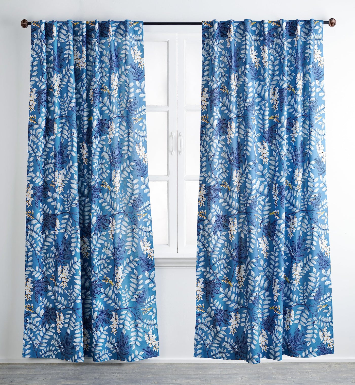 Maison D' Hermine 100% Cotton Curtain Feuillage Air Force Blue Two Panel Curtains For Living Rooms Bedrooms Offices Tailored Wit