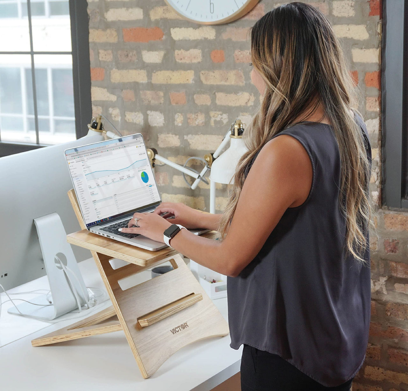 The Victor DC150A is specifically designed for laptop users that want the versatility and ease of a transportable stand. Naturally occurring resins within the wood make it resistant to odors and stains. This easy-to-use space-saving laptop raises and lowers with five height slots to quickly find your perfect ergonomic position. It gets you on your feet, while helping you improve your mental focus, and alleviating back and neck pain from sitting all day.