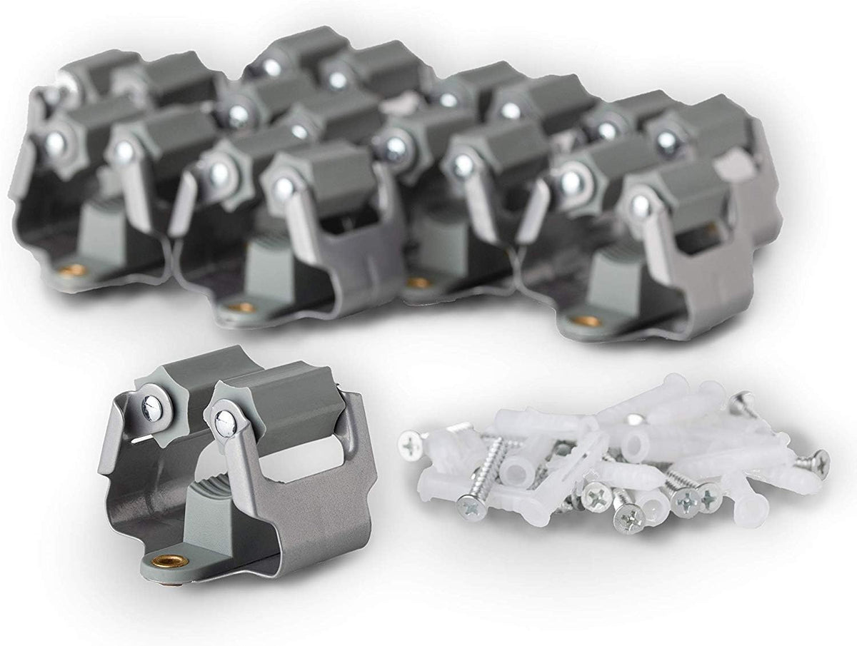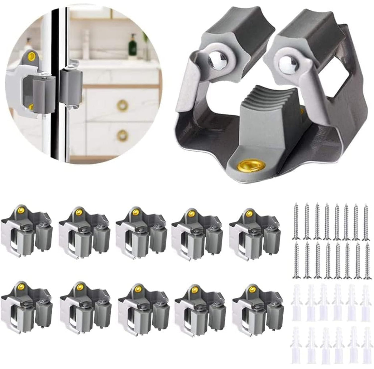 3-H Mop And Broom Holder Big Size Hanging 1 Kg Extra,Broom Hanger 10 Pack,Broom Holder Wall Mount For Hanging And Organizing Shove Rake Yard Tools In Kitchen Shed Laundry Room Bathroom Garden(Grey)