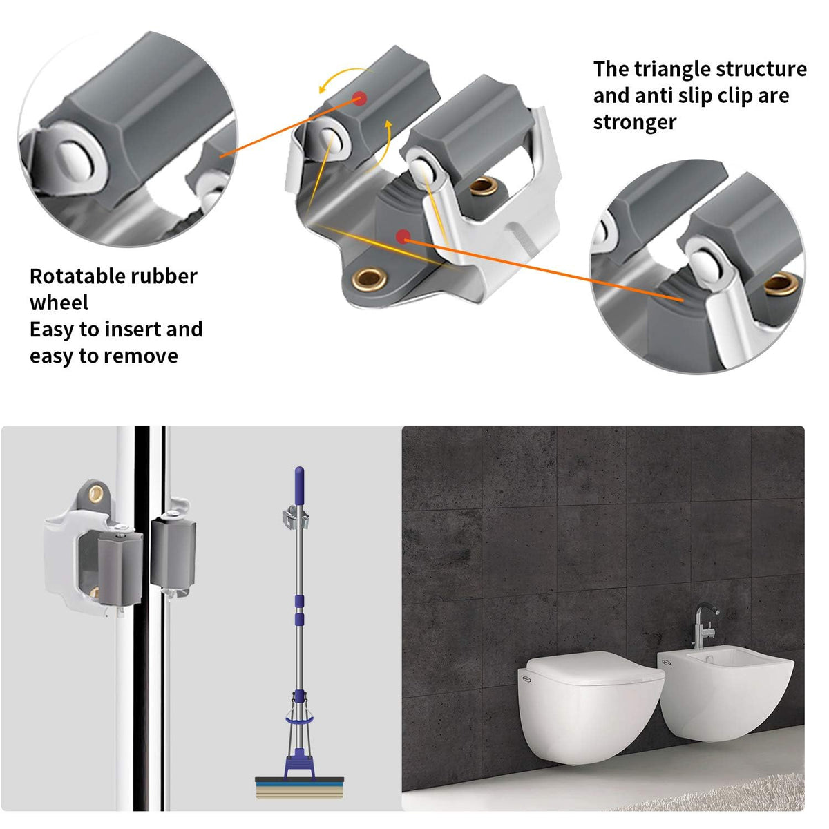 From Mess To Home Decor – Do You Have The Time Don’T Know How To Store Your Home Cleaning Tools Which Is Taking Over Your Kitchen,Bathroom,Laundry Rom Or Garage Shelving, Declutter With 3-H Broom Holder Wall Mount That Will Keep Everything Looking Neat And Cozy | Premium Quality - The Metal Anti-Rust Manganese Spring Steel And The Grip Of The Abrasion-Resistant Rubber Keeps Broom And Dustpan,Garden Tools,Yard Tools,Rake,Shovels Very Well, With The Anchor And Screws Supplied Together, Mop And Broom Holder Wall Mount Can Grip The Mop Handles For A Long Time Without Worrying The Broom Will Fall Off | Easy To Use: Because Mop Broom Holder Wall Mounted Is Made Of 0.7Mm Thick Metal Material Instead Of 0.5Mm As Most Of The Ones On The Market, You Don’T Have To Worry About Deformation Even If You Use It Indoors Or Outdoors For A Long Time.You Can Slide The Broom In And Out With One Hand. Unlike Plastic Mop Holders With Spring-Loaded Rollers, This Broom Organizer Wall Mount Has Rubber Rollers To Hold The Handles, Allowing The Handle To Slide In From The Front And Be Held Firmly In Place. | Superb Stable - Can Be Attached Individually And Placed Individually.With Fit Diameter Range From 18-35 Mm(0.7-1.45 In) By Lifting The Mop Handle, The Broom Wall Mount Rolling Balls Automatically Adjust To Each Broom Handle'S Thickness And Grips It Securely. Silicone Grip Keeps Tool Handles Away From Slipping & Scratching,Broom Holder Can Grip Up To 8-10 Pounds Cleaning Tools And Garden Tools | Easy To Install - You Can Easily Install 3-H Broom Holder Wall Mount In A Few Seconds, This Broom Hanger Wall Mount Is Suitable For All Types Wall, No Matter Smooth Surface Or Rough Surface. Such As:Marble, Wood, Metal, Ceramics, Ceramic Tiles, Acrylic, Plastic Surface, Non-Paint Walls, Cement, Wallpaper, Plaster, Paint, Waxing And Brick Wall, So Please Choose Your Ideal Installation Location.