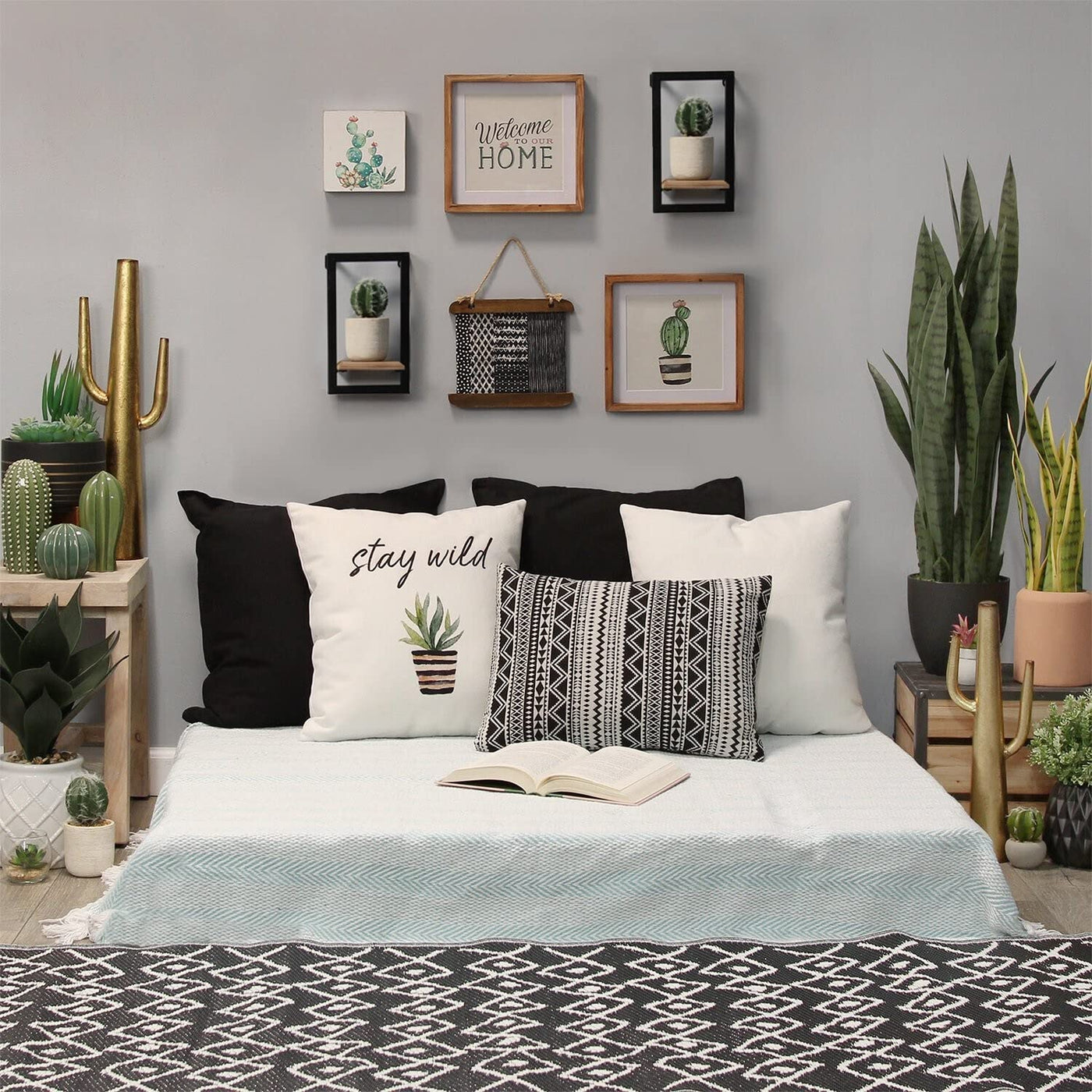 Make any space more inviting with the Set of Mini Shelves on your wall. This handsome set of handcrafted open metal frames with wood shelves adds functional style to any room. Each Mini Shelf measures 6' W X 5' D X 10' H overall. Display them together or use them separately in different rooms. Show off your creativity with a display of small art objects, books, framed photos, or a mix of all different treasures. The possibilities are limitless.