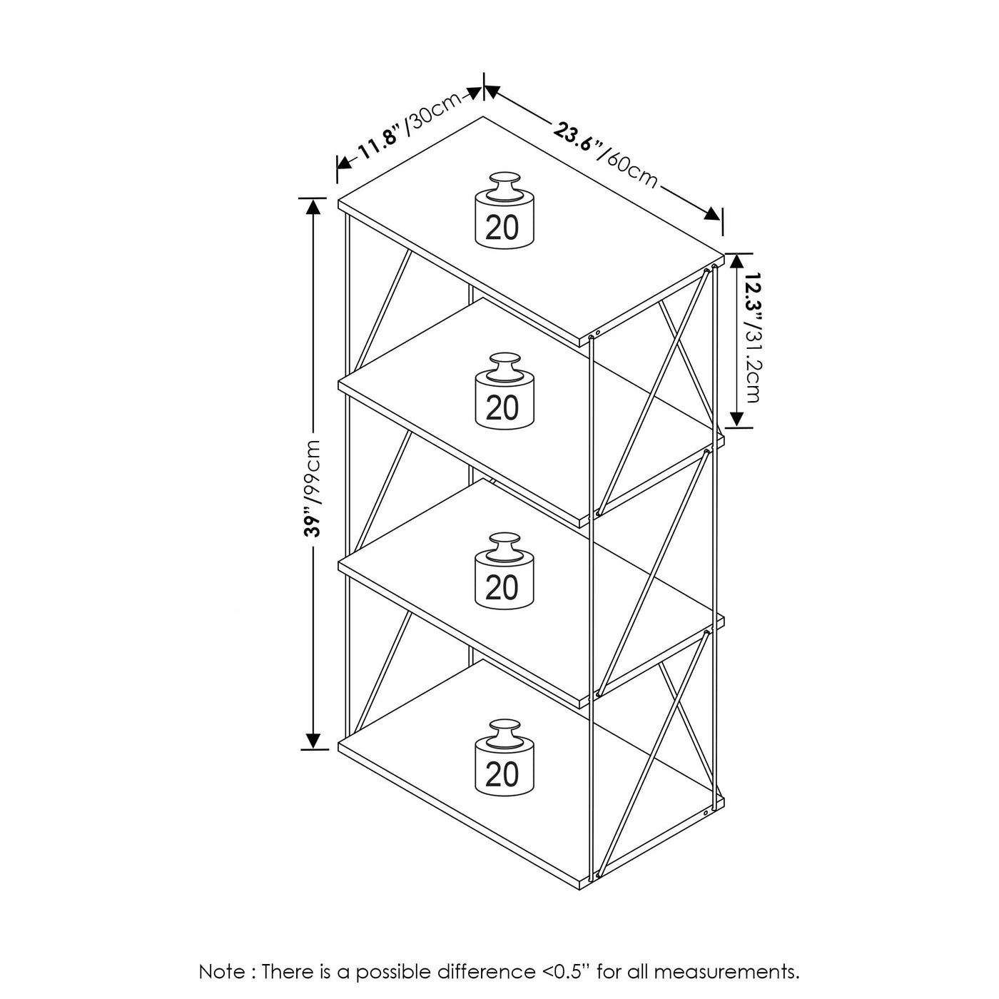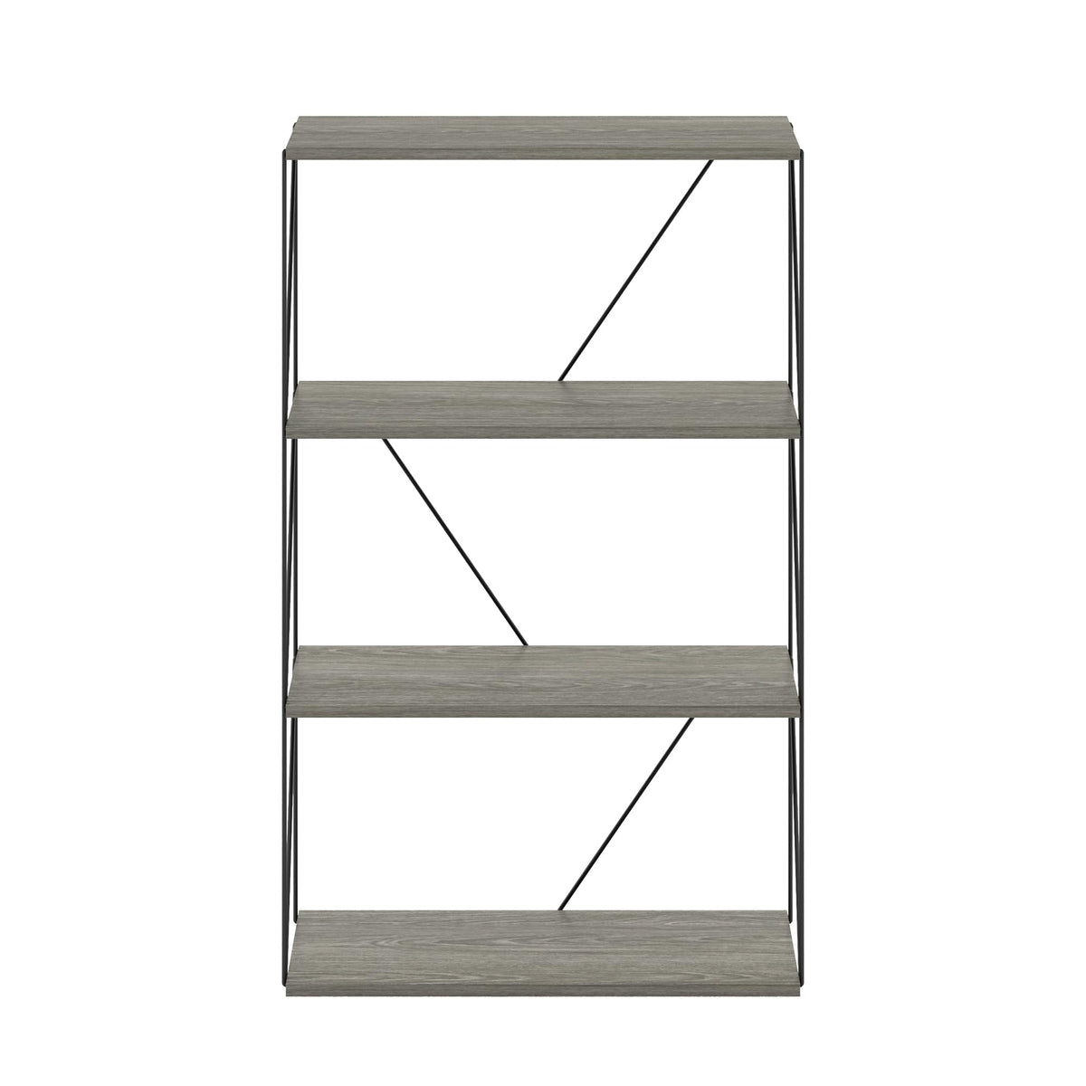 Furinno Rata 4-Tier Industrial Multipurpose Flat Base Shelf Display Rack with Metal Frame, French Oak Grey