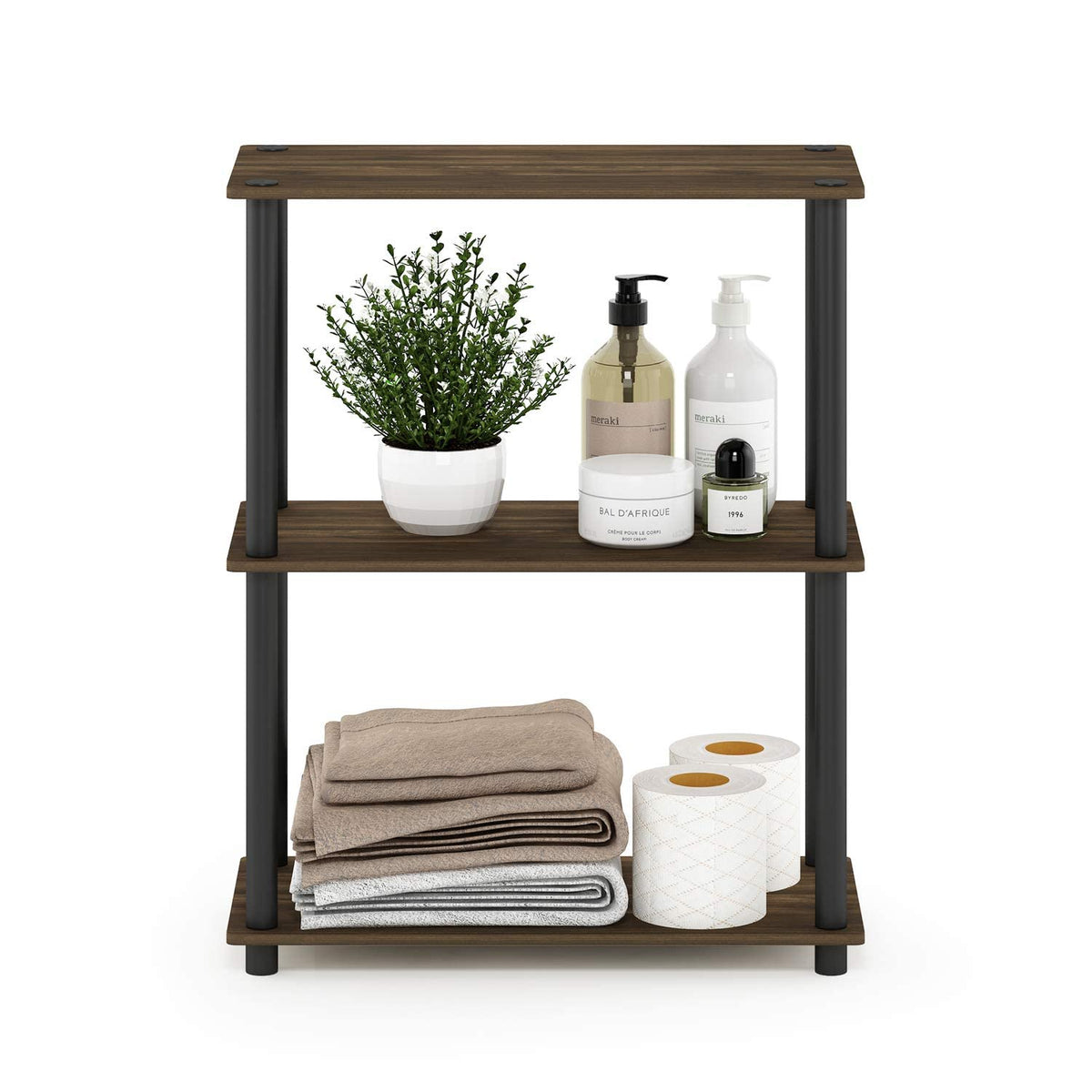 Furinno Turn-N-Tube 3-Tier Compact Multipurpose Shelf Display Rack, Columbia Walnut/Black