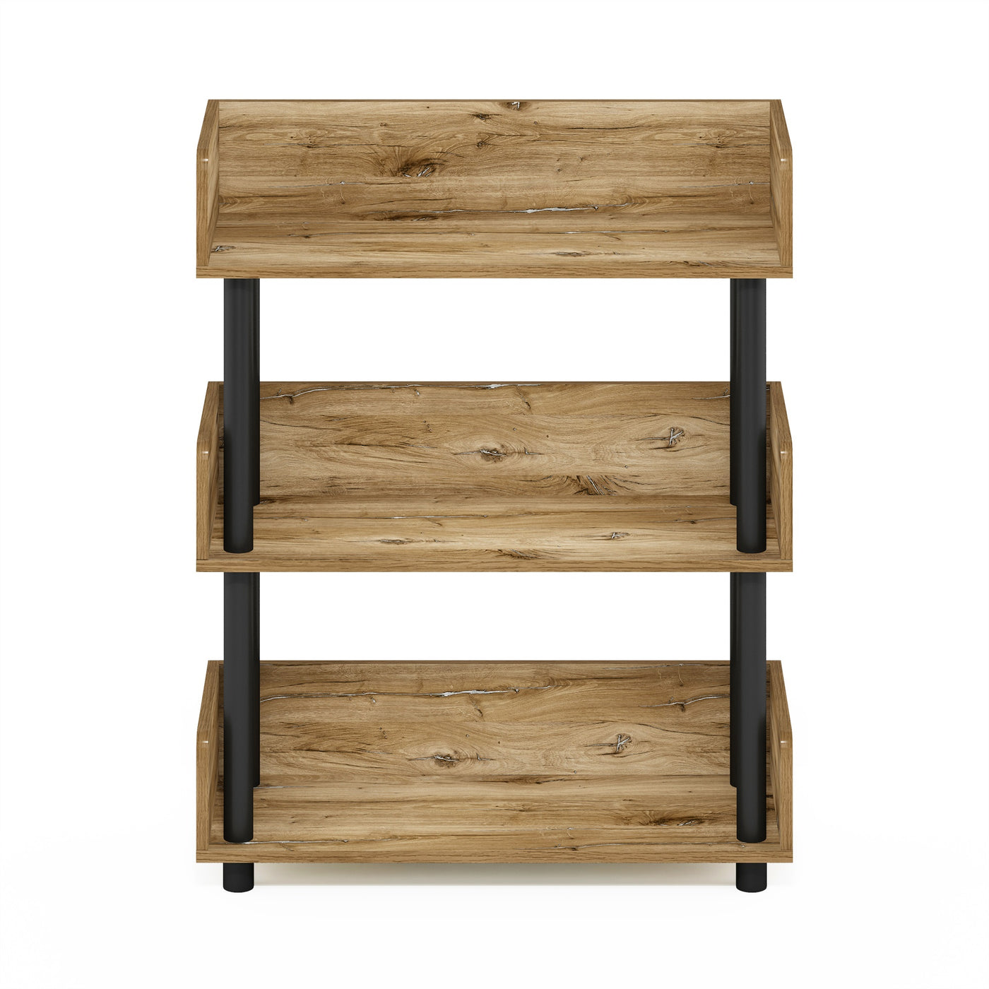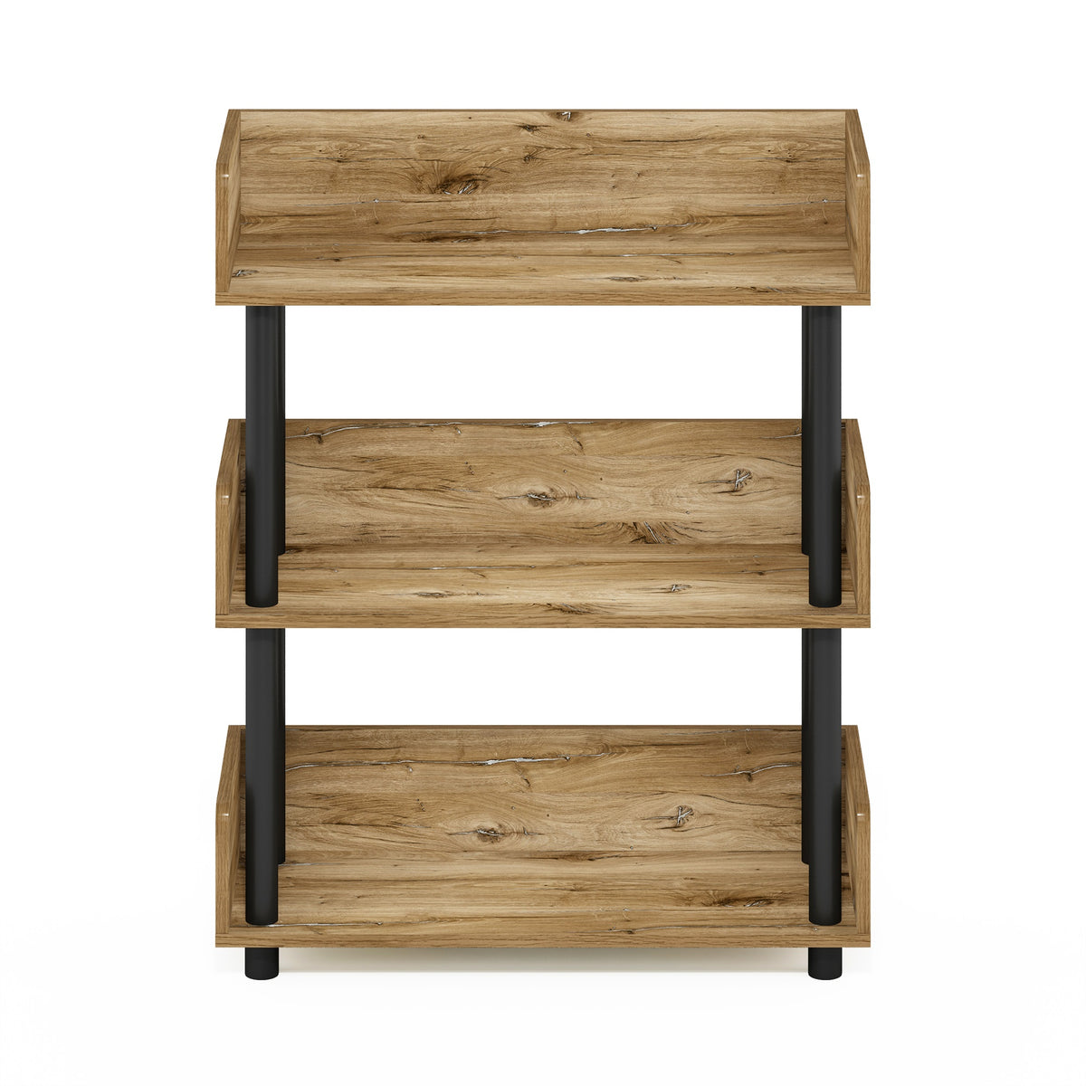 The Furinno Turn-N-Tube 3-Tier Toolless Display Rack is an effortlessly stylish and practical storage solution designed to fit seamlessly into any room. Easy to assemble with its innovative toolless design, this durable rack is made of sturdy particleboard and PVC tubes for long-lasting use. Its three spacious tiers provide ample room for display and storage, making it ideal for books, decorative items, or even kitchenware, allowing you to declutter and enhance your space effortlessly. The display rack is made of CARB-grade composite wood tested for durability and sturdiness, carrying the Programme for the Endorsement of Forest Certification (PEFC). Assembly is easy with provided step-by-step instructions. Care instructions: wipe clean with a clean dry cloth. Avoid using harsh chemicals. Pictures are for illustration purposes. All decor items are not included in this offer. The product is entitled to a 1-year warranty against manufacturer defects.
