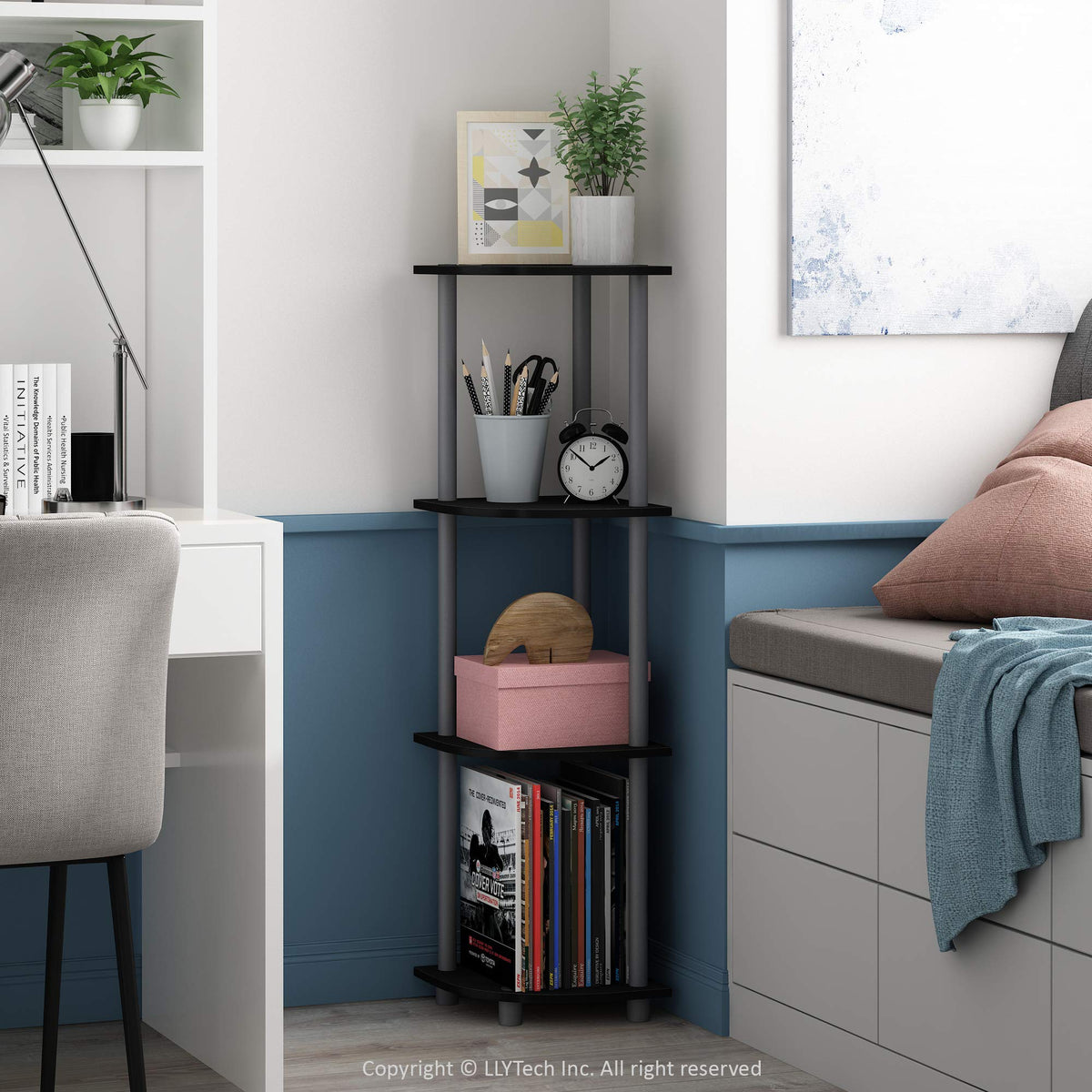 Furinno Turn-N-Tube 4-Tier Corner Display Rack Multipurpose Shelving Unit, Black/Grey