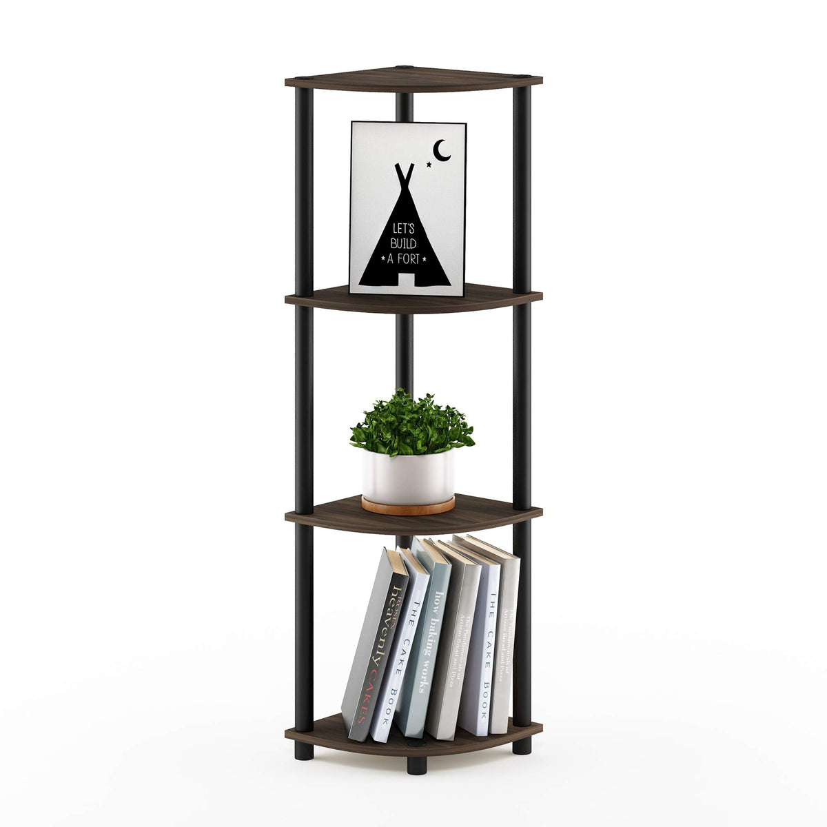 Furinno Turn-N-Tube 4-Tier Corner Display Rack Multipurpose Shelving Unit, Columbia Walnut/Black