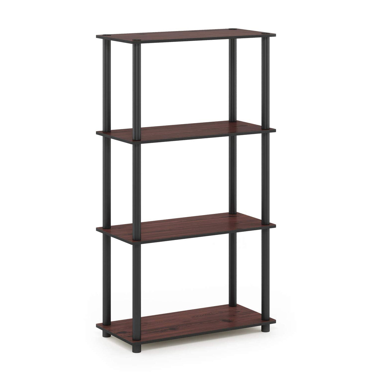 Furinno Turn-N-Tube 4-Tier Multipurpose Shelf Display Rack With Round Tubes, Dark Cherry/Black